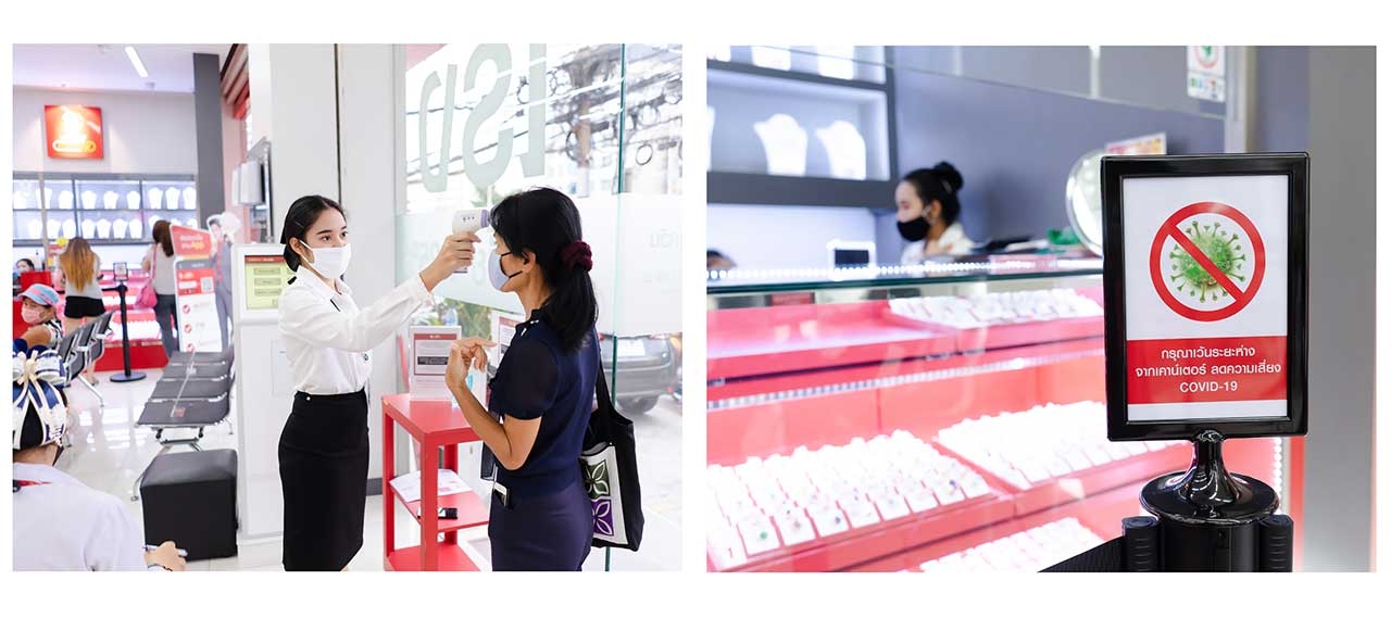 นอกจากนี้ยังมีมาตรการรักษาความปลอดภัยของลูกค้า และพนักงาน ทั้งการตรวจวัดไข้ จัดพื้นที่ให้บริการที่เว้นระยะห่าง ทำความสะอาด จัดเตรียมอุปกรณ์ป้องกันอย่างหน้ากาก เจล ถุงมือให้แก่พนักงานระหว่างให้บริการด้วย