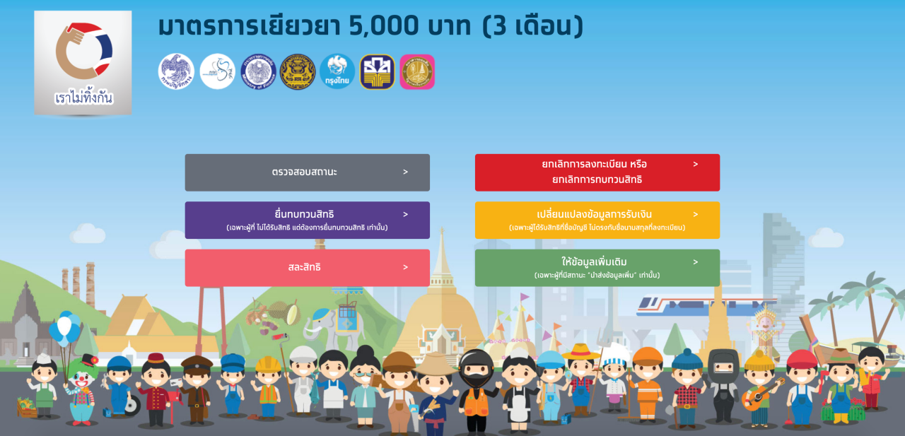 จากกรณี รัฐบาลเปิดมาตรการเยียวยาลูกจ้างชั่วคราว อาชีพอิสระ นอกระบบประกันสังคม ที่ได้รับผลกระทบจากเชื้อไวรัส "โควิด-19" (COVID-19) จะได้รับเงินสนับสนุนรายละ 5,000 บาทต่อเดือน โดยต้องลงทะเบียนผ่านเว็บไซต์ www.เราไม่ทิ้งกัน.com เท่านั้น ซึ่งล่าสุดได้ปิดการลงทะเบียนขอรับสิทธิ์ไปแล้ว แต่ยังเปิดเว็บให้ตรวจสอบสถานะ ยกเลิกการลงทะเบียน, ยื่นทบทวนสิทธิ์, เปลี่ยนแปลงข้อมูลการรับเงิน และยื่นข้อมูลเพิ่มเติมได้