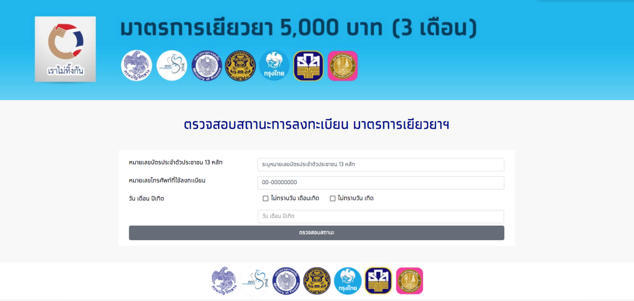 ตรวจสอบสถานะเราไม่ทิ้งกัน วันนี้หลายคนสถานะเปลี่ยนแล้ว สำหรับใครที่ยังไม่ได้รับเงินเยียวยา 5,000 บาท อย่าลืมเช็กสิทธิ์ผ่าน www.เราไม่ทิ้งกัน.com