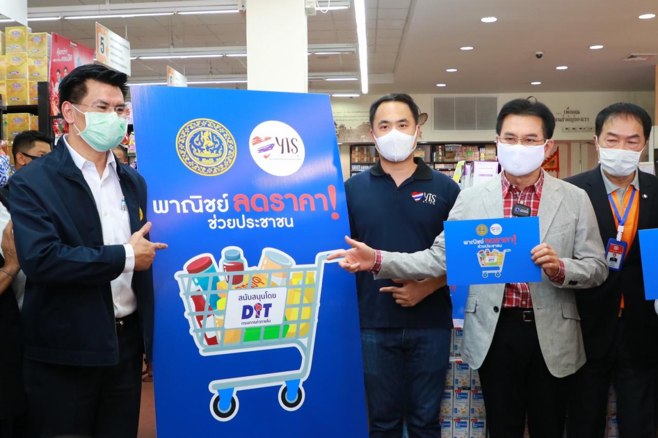 โดยกระทรวงพาณิชย์ ได้ดำเนินการโครงการพาณิชย์ลดราคาช่วยประชาชน ลอต 1 เมื่อวันที่ 16 เมษายน 2563 มีผู้ผลิตสินค้ารายใหญ่ของประเทศ 14 บริษัท และห้างค้าปลีกอีก 8 แห่ง ต่างพากันนำสินค้าจำเป็นต่อการครองชีพใน 6 หมวดสินค้า จำนวน 72 รายการ มาลดราคาสูงสุด 58% จากนั้นตามติดมาด้วยลดราคาข้าวสารถุง 18 ยี่ห้อ ทั้งหมด 104 รายการ สูงสุด 50% ขณะที่โครงการพาณิชย์ลดราคาช่วยประชาชน