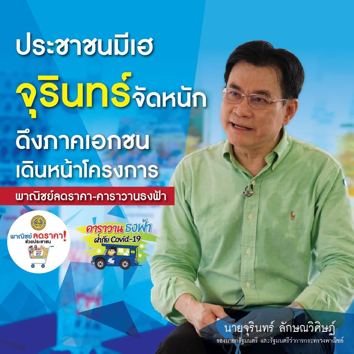 จุรินทร์ รองนายกรัฐมนตรีและรมว.พาณิชย์ เดินเครื่อง “พาณิชย์ลดราคา! ช่วยประชาชน ลอต 3 ขนห้างท้องถิ่นร่วมเพียบ ต่อยอดด้วย "รถพุ่มพวงธงฟ้า" เพื่อเป้าหมายลดค่าครองชีพปชช.ในช่วงวิกฤติโควิด-19 แพร่ระบาด
