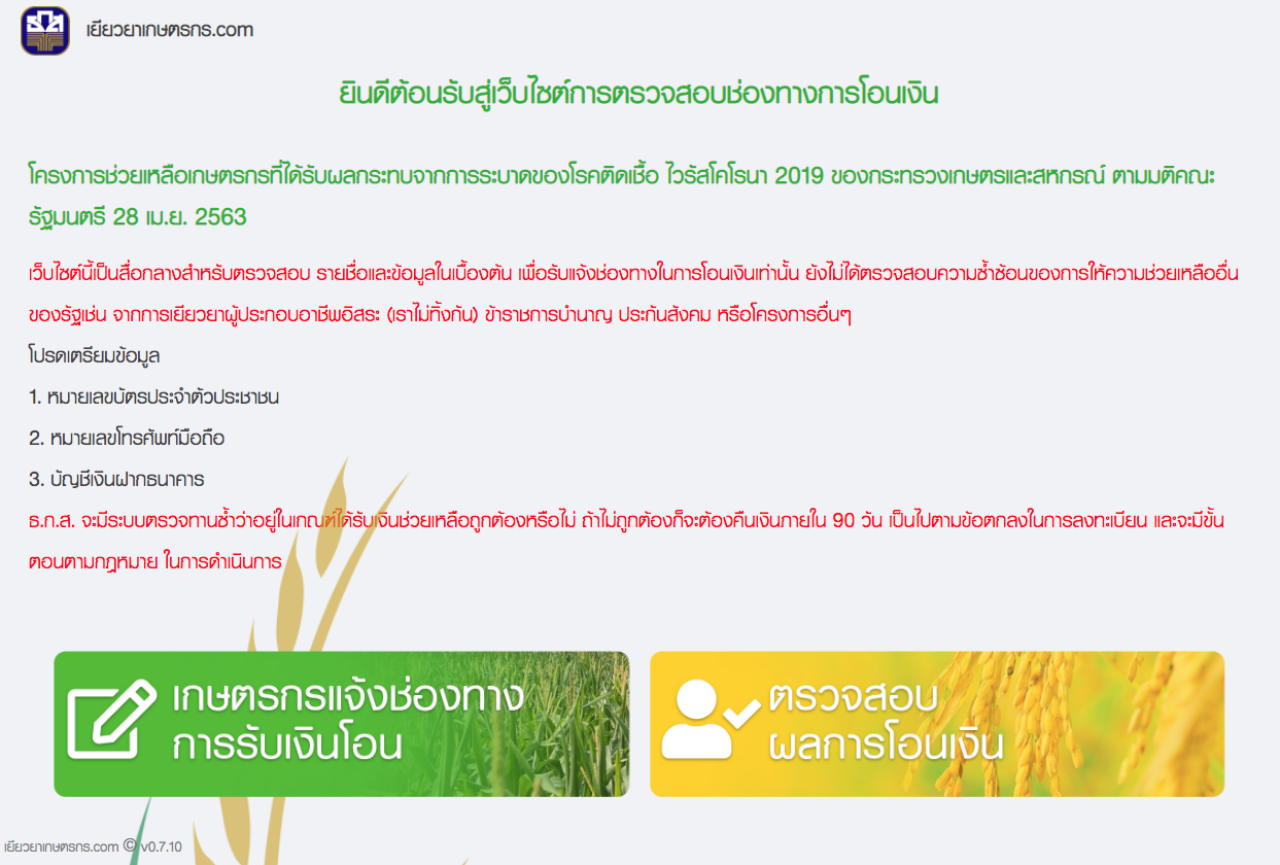 ตรวจสอบสิทธิ์ "เงินเยียวยาเกษตรกร" จ่ายจริงแค่ 8 ล้านคน เนื่องจาก พบบางคนทำหลายอาชีพ เร่งโอนกลุ่ม 2 ภายใน 31 พ.ค.63 เช็กผลการโอนผ่านเว็บ รู้เลยได้เงินวันไหน