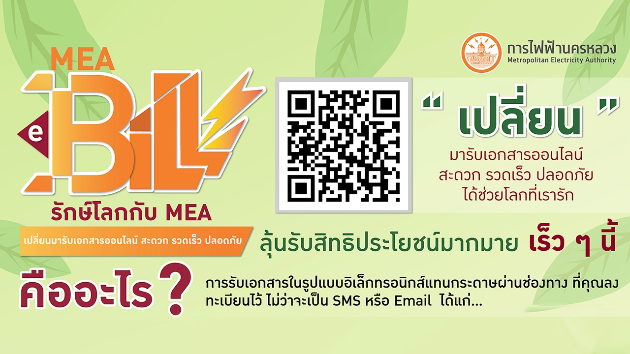ใช้ชีวิตให้ Smart แค่เปลี่ยนมารับเอกสารออนไลน์ผ่าน MEA e-Bill ไม่ต้องเดินทาง ไม่ต้องสัมผัสกระดาษ ลดความเสี่ยง #COVID-19