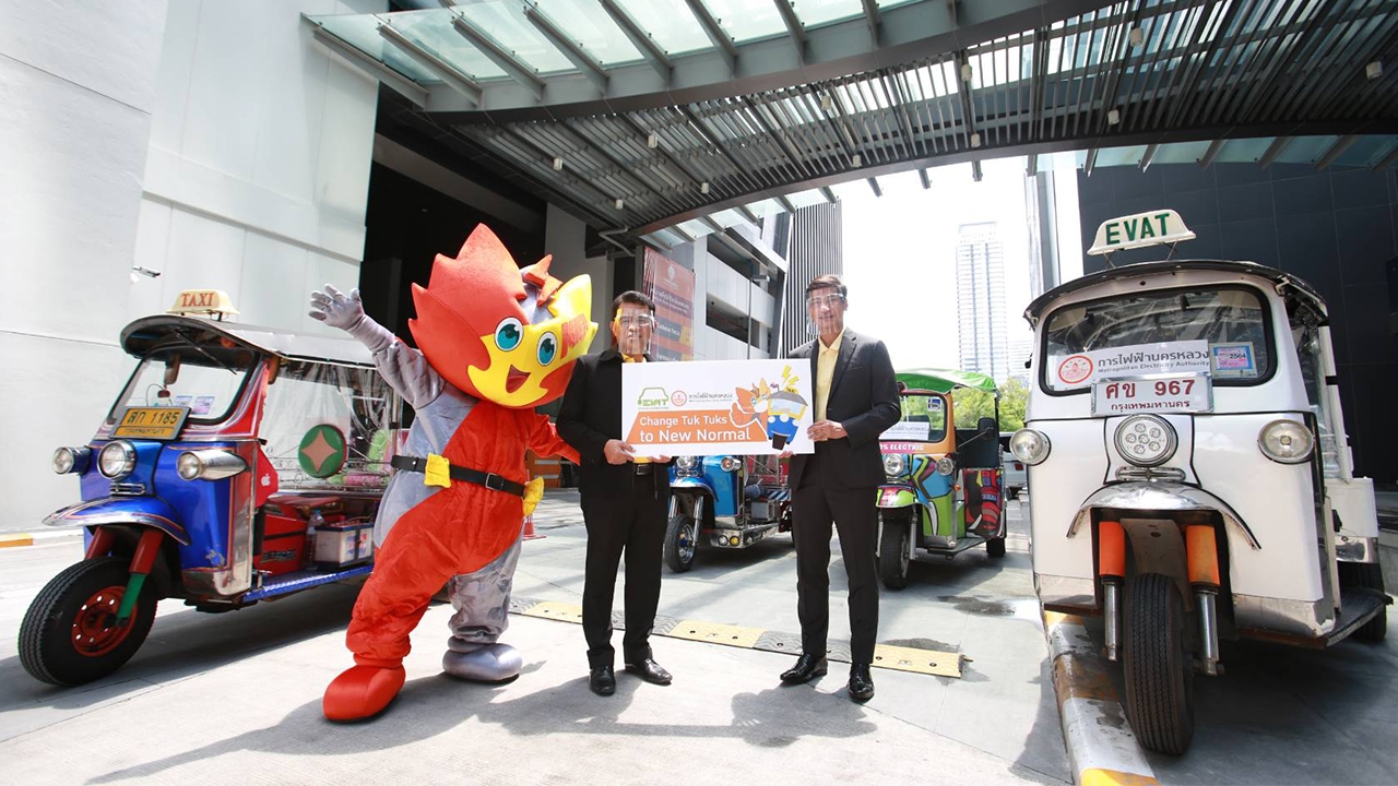 นายวิลาศ เฉลยสัตย์ รองผู้ว่าการการไฟฟ้านครหลวง หรือ MEA ร่วมกับ นายกฤษฎา อุตตโมทย์ อุปนายกสมาคมยานยนต์ไฟฟ้าไทย (EVAT) ฝ่ายส่งเสริมการใช้ พร้อมด้วยคณะผู้แทนหน่วยงาน ร่วมจัดกิจกรรม Change Tuk Tuks to New Normal เพื่อสร้างความมั่นใจให้กับผู้โดยสาร และผู้ขับขี่รถตุ๊กตุ๊กในช่วงสถานการณ์เฝ้าระวังการระบาดของเชื้อไวรัสโคโรนาสายพันธุ์ใหม่ 2019 (COVID-19) พร้อมรณรงค์การใช้งานรถตุ๊กตุ๊กไฟฟ้าที่จะช่วยลดผลกระทบจากสิ่งแวดล้อม และส่งเสริมการท่องเที่ยวของประเทศไทย ณ อาคารวัฒนวิภาส การไฟฟ้านครหลวงสำนักงานใหญ่ คลองเตย