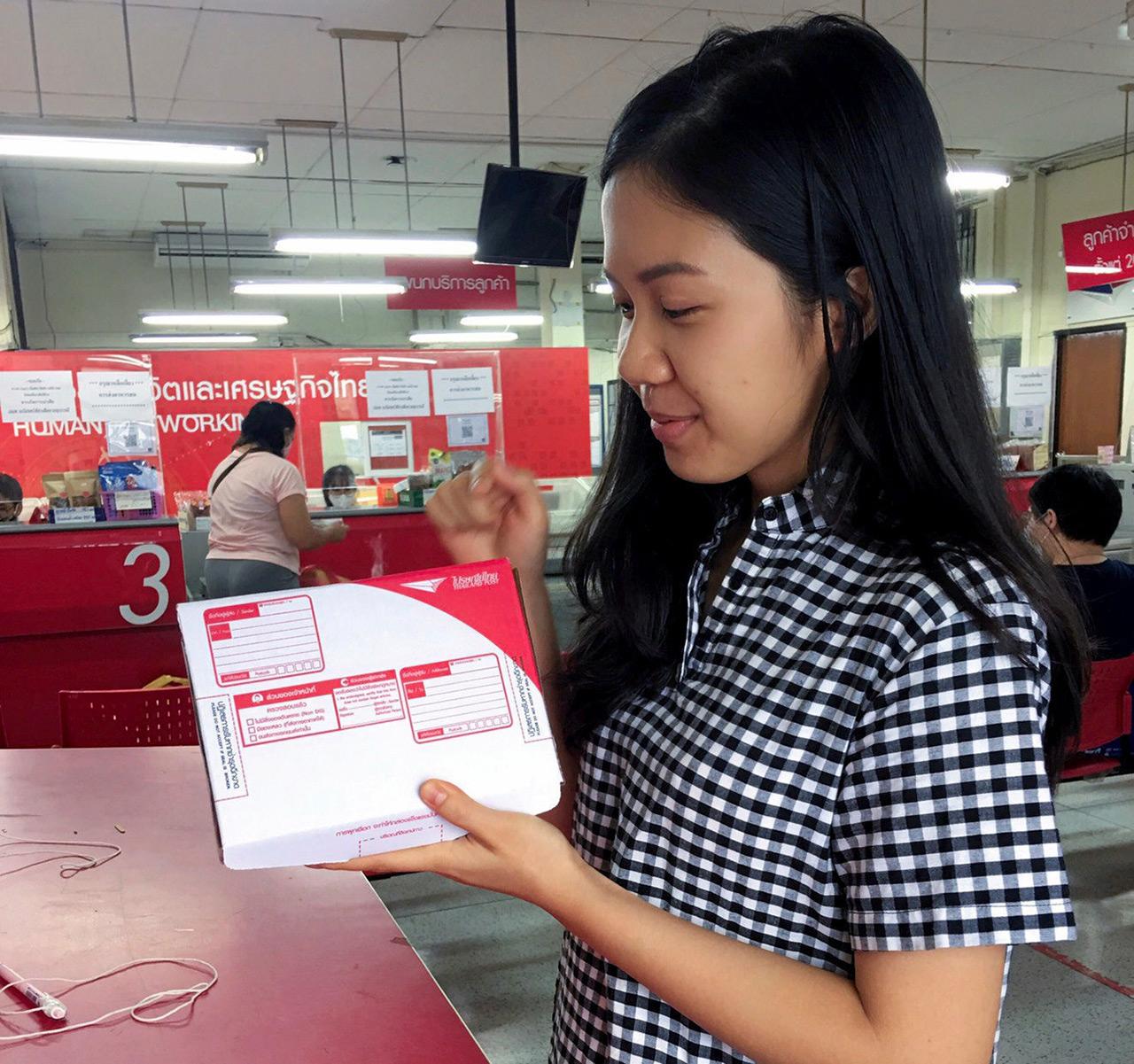 คุณใหม่ เล่าว่า นอกจากความใส่ใจในเรื่องของคุณภาพสินค้าแล้ว อีกสิ่งที่ให้ความสำคัญคือด้านการจัดส่ง โดยช่วงแรกๆ ก็ไม่รู้ว่าจะเลือกใช้บริการขนส่งอะไร ซึ่งก็เลือกที่ตนเองสะดวก รวมถึงสอบถามจากกลุ่มลูกค้า ซึ่งส่วนมากชอบการขนส่งของไปรษณีย์ไทย โดยจากนั้นก็เลือกใช้บริการไปรษณีย์ส่งสินค้ามาตลอด