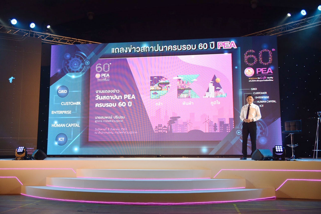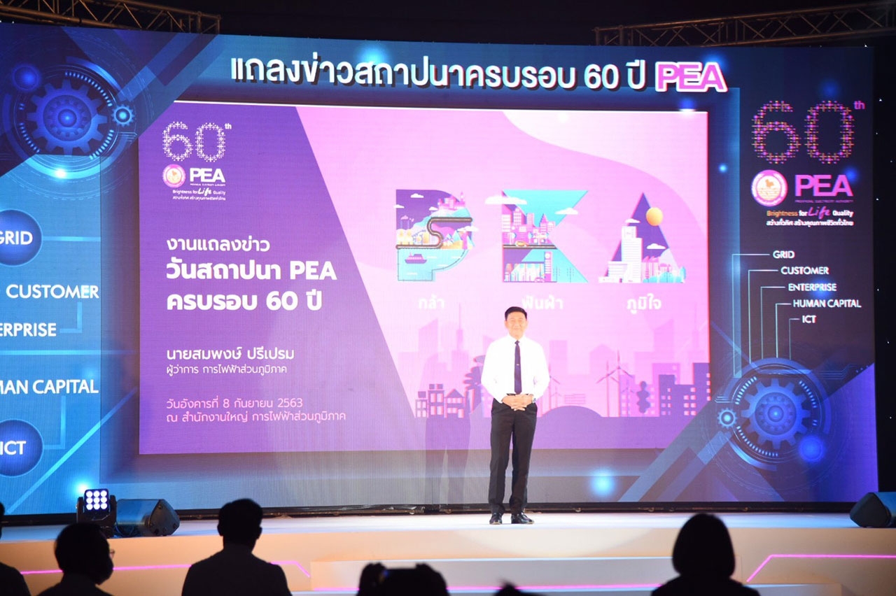 นายสมพงษ์ ปรีเปรม ผู้ว่าการการไฟฟ้าส่วนภูมิภาค (PEA) แถลงข่าวเนื่องในโอกาสวันสถาปนาการไฟฟ้าส่วนภูมิภาคครบรอบ 60 ปี ในวันที่ 28 กันยายน 2563 โดยมีผู้บริหาร PEA และสื่อมวลชนร่วมรับฟังการแถลงข่าว ณ ห้องอเนกประสงค์ ชั้น 6 อาคาร LED สำนักงานใหญ่ PEA กรุงเทพฯ