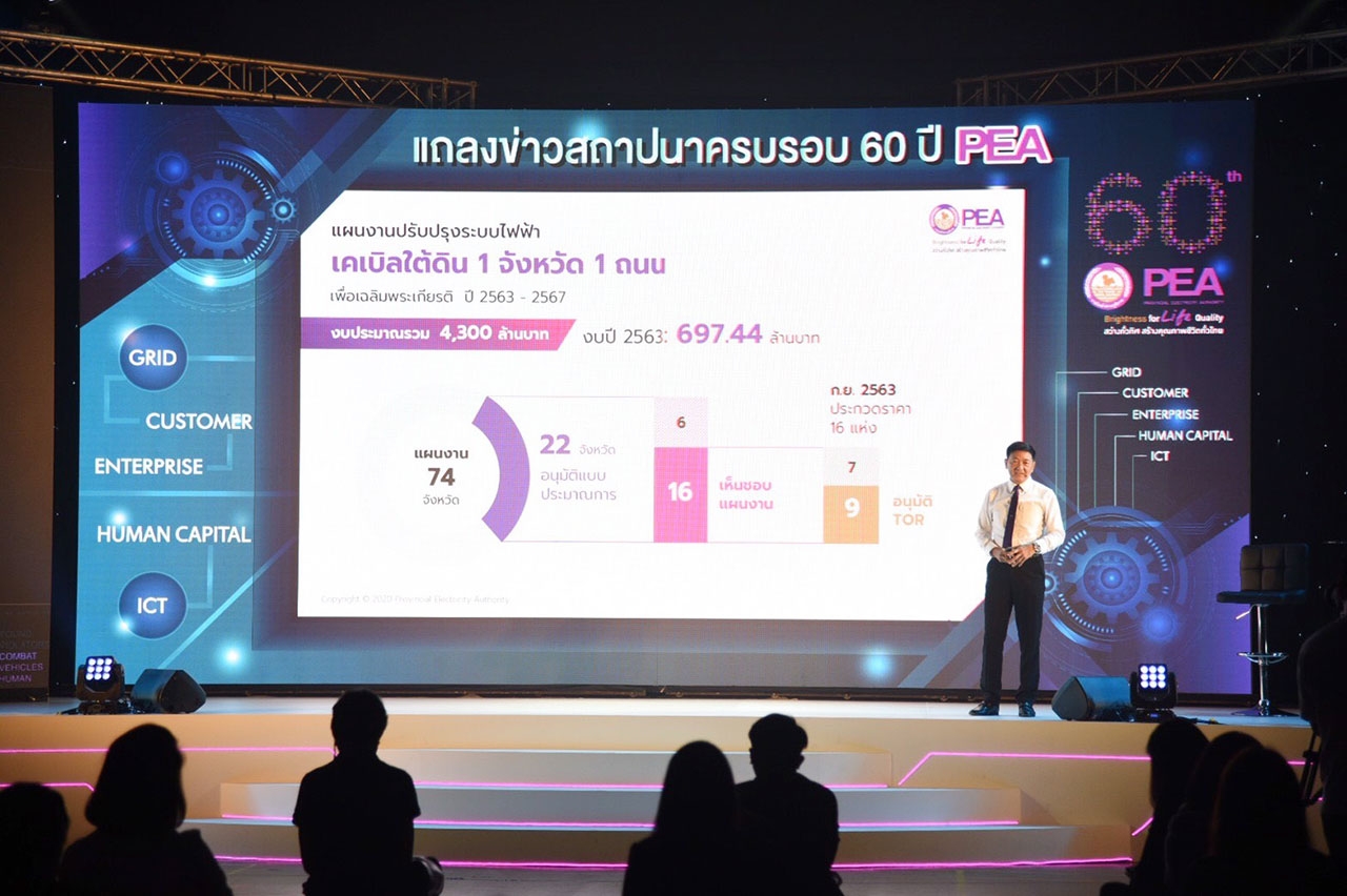 โครงการ 1 จังหวัด 1 ถนนเฉลิมพระเกียรติ : PEA สนับสนุนโครงการดังกล่าว เฉลิมพระเกียรติพระบาทสมเด็จพระเจ้าอยู่หัว ปรับปรุงระบบไฟฟ้าเคเบิลใต้ดิน 1 จังหวัด 1 ถนน ระยะทางจังหวัดละ 1 – 2 กิโลเมตร โดยรับผิดชอบค่าใช้จ่ายการก่อสร้างระบบไฟฟ้าเคเบิลใต้ดินทั้งหมด