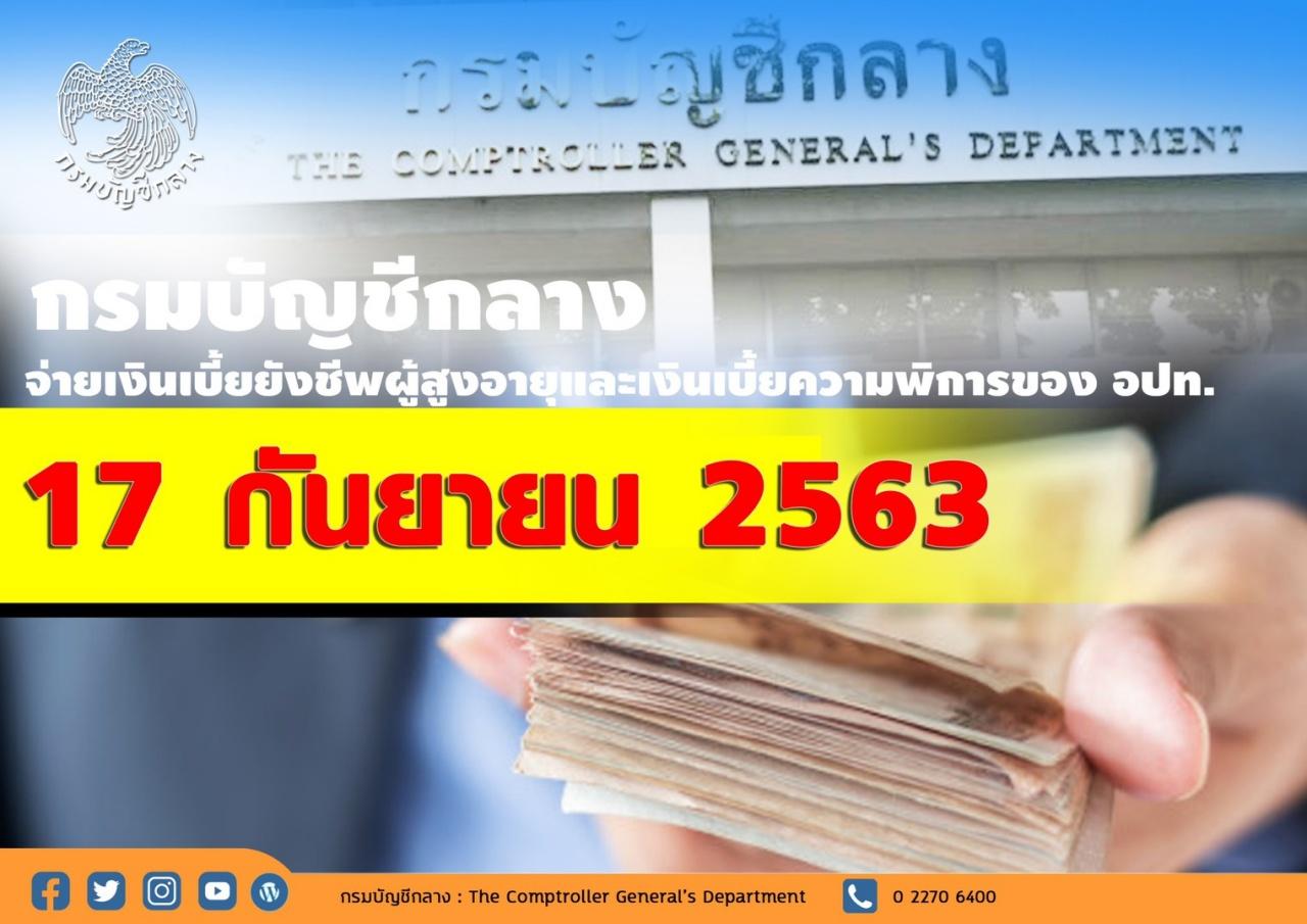 กรมบัญชีกลาง พร้อมจ่าย เบี้ยยังชีพผู้สูงอายุและเบี้ยความพิการ ประจำเดือนกันยายน 2563 ในวันที่ 17 กันยายน 2563