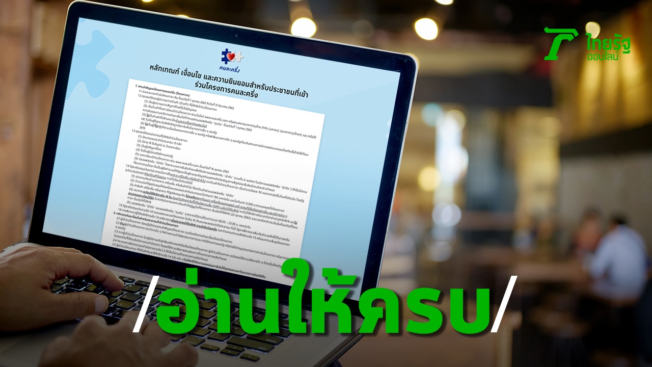 เปิดหลักเกณฑ์ เงื่อนไข และความยินยอมสำหรับประชาชน อ่านและทำความเข้าใจอย่างละเอียดก่อนกด "ยืนยัน" เข้าร่วมโครงการ "คนละครึ่ง"