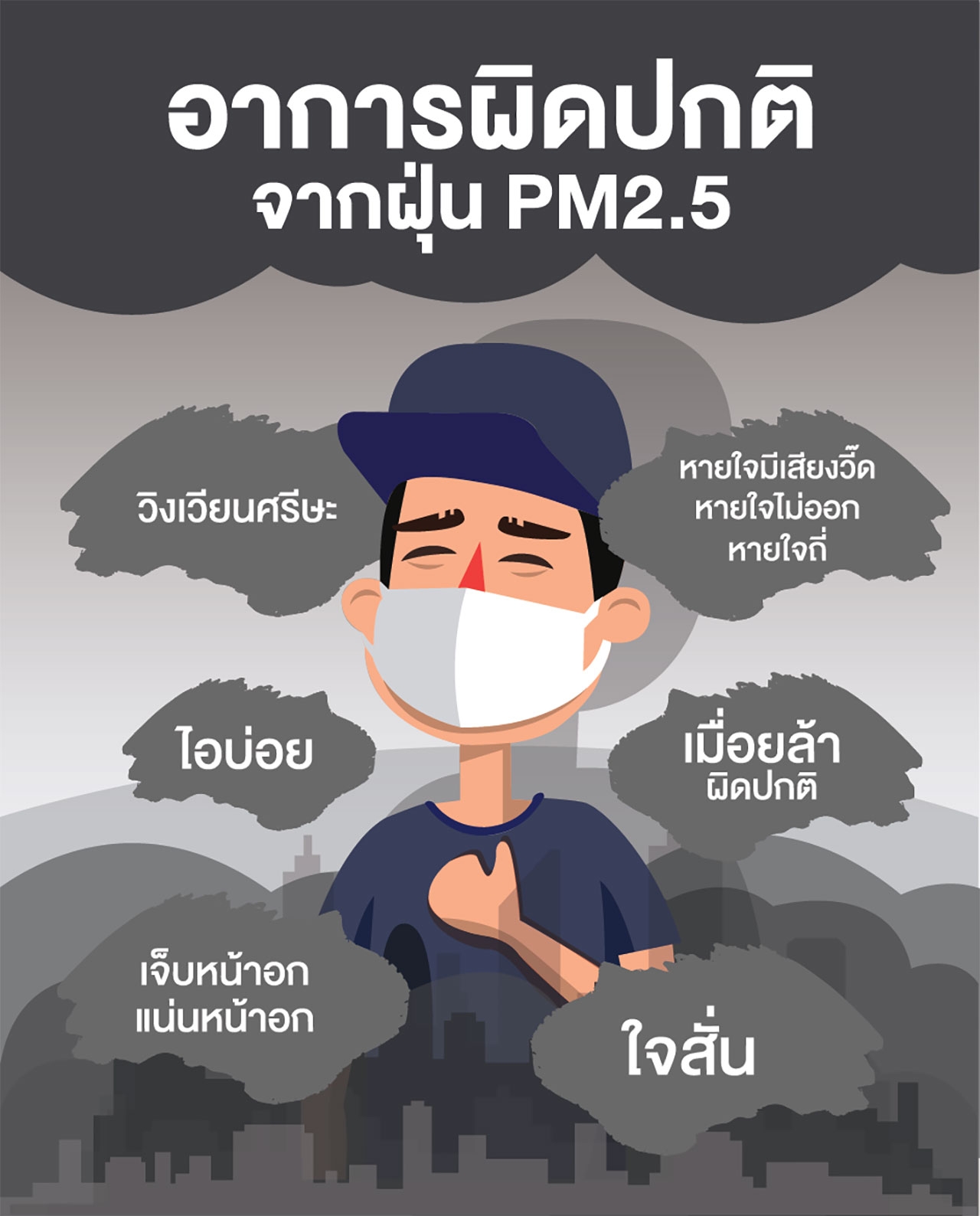 จากข้อมูลในเว็บไซต์ กรีนพีช ประเทศไทย ระบุว่า มลพิษทางอากาศที่มีอันตรายต่อสุขภาพมากที่สุดคือ ฝุ่นละอองขนาดเล็กไม่เกิน 2.5 ไมครอน หรือ ฝุ่น PM2.5 ด้วยขนาดที่เล็กมาก ทำให้สามารถเข้าไปสู่ระบบทางเดินหายใจของมนุษย์ได้ ส่งผลกระทบต่อสุขภาพทั้งระยะสั้นและระยะยาวมากมาย ทำให้ในแต่ละปีผู้คนต้องเสียเงินจำนวนมหาศาลในการจ่ายค่ารักษาพยาบาล