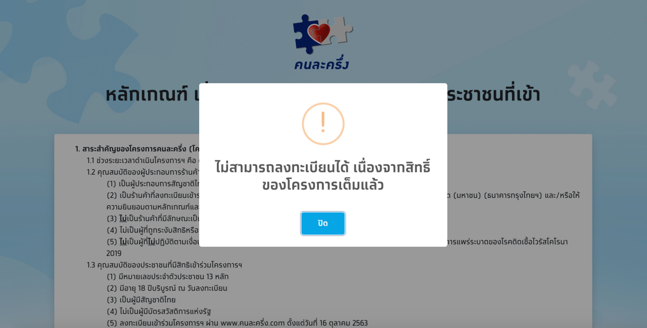 จากกรณี กระทรวงการคลัง ได้เปิดให้ประชาชนลงทะเบียนเข้าร่วมโครงการ "คนละครึ่ง" อีกครั้งในวันที่ 11 พ.ย. 2563 ระหว่างเวลา 06.00–23.00 น. ผ่านเว็บไซต์ www.คนละครึ่ง.com เนื่องจากมีสิทธิ์คงเหลือจากผู้ไม่ผ่านการตรวจสอบสิทธิ์ และผู้ไม่เริ่มใช้สิทธิ์ภายในกำหนด 14 วัน โดยนำมาเปิดให้ประชาชนลงทะเบียนเป็นจำนวนกว่า 2.5 ล้านสิทธิ์