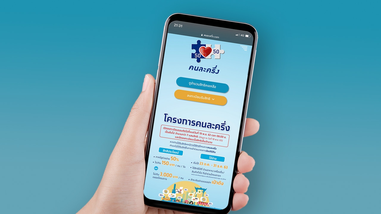 น.ส.รัชดา ธนาดิเรก รองโฆษกประจำสำนักนายกรัฐมนตรี ได้ทวีตข้อความผ่านทวิตเตอร์ ระบุว่า ครม. อนุมัติ "คนละครึ่ง" เฟส 2 รับเพิ่ม 5 ล้านคน วงเงิน 3,500 บ./คน (ไม่เกิน 150 บ./วัน) เริ่มใช้ 1 ม.ค. - 31 มี.ค.64 วันลงทะเบียน รอกระทรวงการคลังแจ้ง