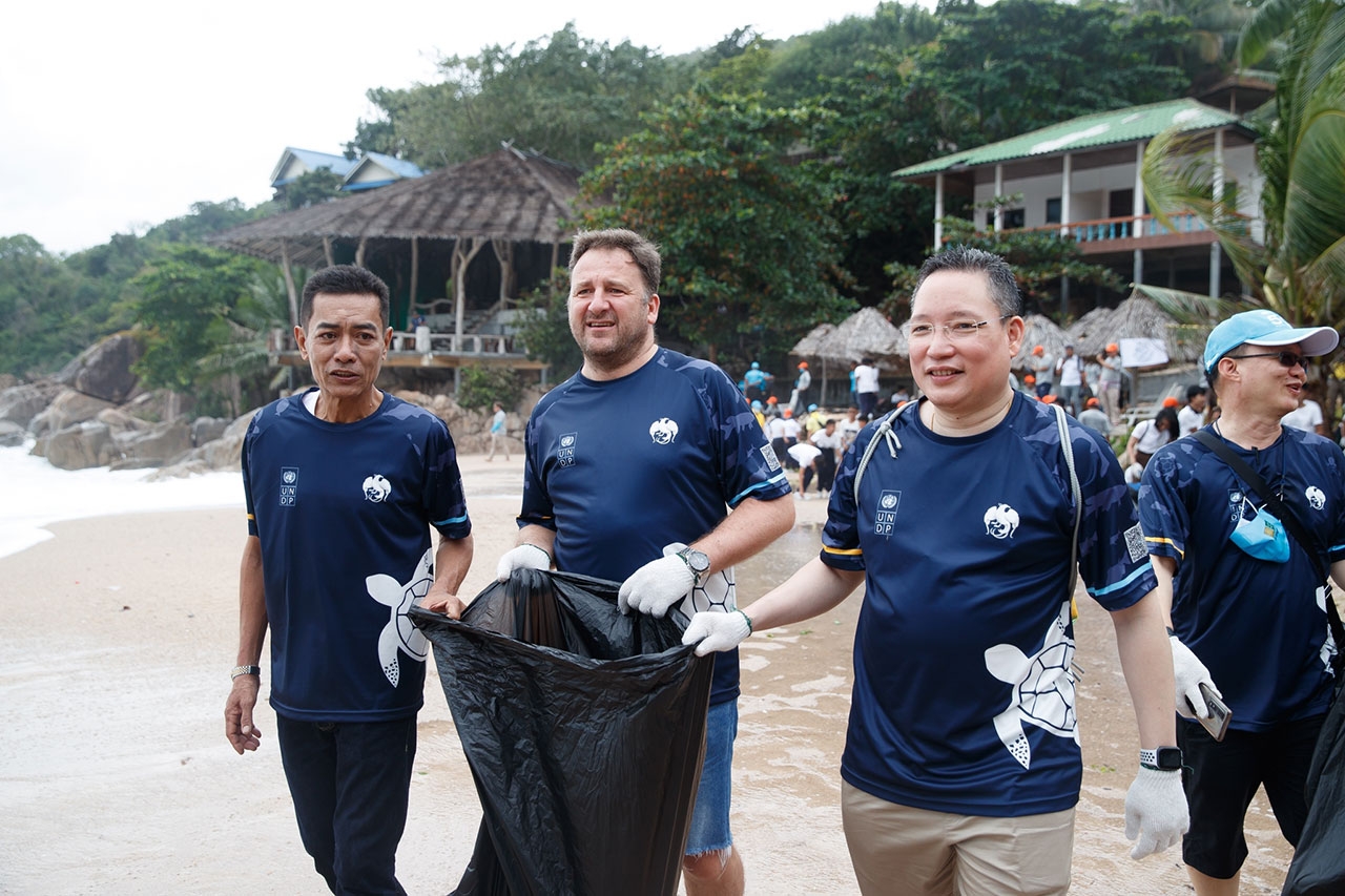 นายผยง ศรีวณิช กรรมการผู้จัดการใหญ่ ธนาคารกรุงไทย นายเรอโน เมแยร์ ผู้แทนโครงการพัฒนาแห่งสหประชาชาติประจำประเทศไทย หรือ UNDP ประเทศไทย นางสาวบุญธิดา เกตุสมบูรณ์ ผู้จัดการฝ่ายสิ่งแวดล้อมมูลนิธิรักษ์ไทย และ นายไชยันต์ ธุระสกุล นายกเทศมนตรีตำบลเกาะเต่า ตัวแทนหน่วยงานภาครัฐและเอกชน นักแสดงชื่อดัง บิ๊กเอ็ม กฤตฤทธิ์ ปูเป้ เกศรินทร์ นะโม ธันวาพร ตุลย์ ภากร และ นท เดอะสตาร์ รวมทั้งคนในชุมชนเกาะเต่า ร่วมกิจกรรม Big Cleaning Day ภายใต้โครงการ Koh Tao, Better Together เมื่อวันที่ 3 ธันวาคม 2563
