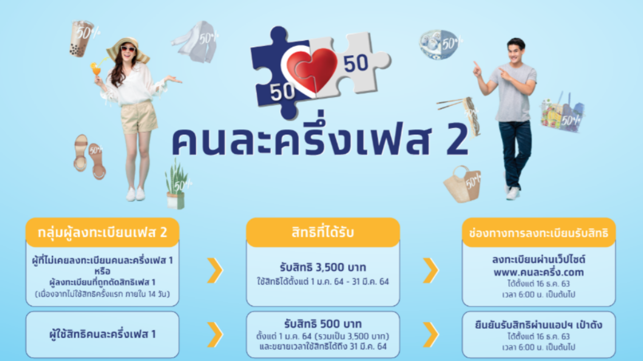 หลังจากคณะรัฐมนตรี (ครม.) มีมติเห็นชอบตามผลการพิจารณาของคณะกรรมการกลั่นกรองการใช้จ่ายเงินกู้ ในคราวประชุมครั้งที่ 30/2563 โดยอนุมัติให้กระทรวงการคลังดำเนินโครงการ ประกอบด้วย 1.โครงการเพิ่มกำลังซื้อให้แก่ผู้มีบัตรสวัสดิการแห่งรัฐ ระยะที่ 2 และ 2.โครงการคนละครึ่ง ระยะที่ 2 หรือ คนละครึ่ง เฟส 2