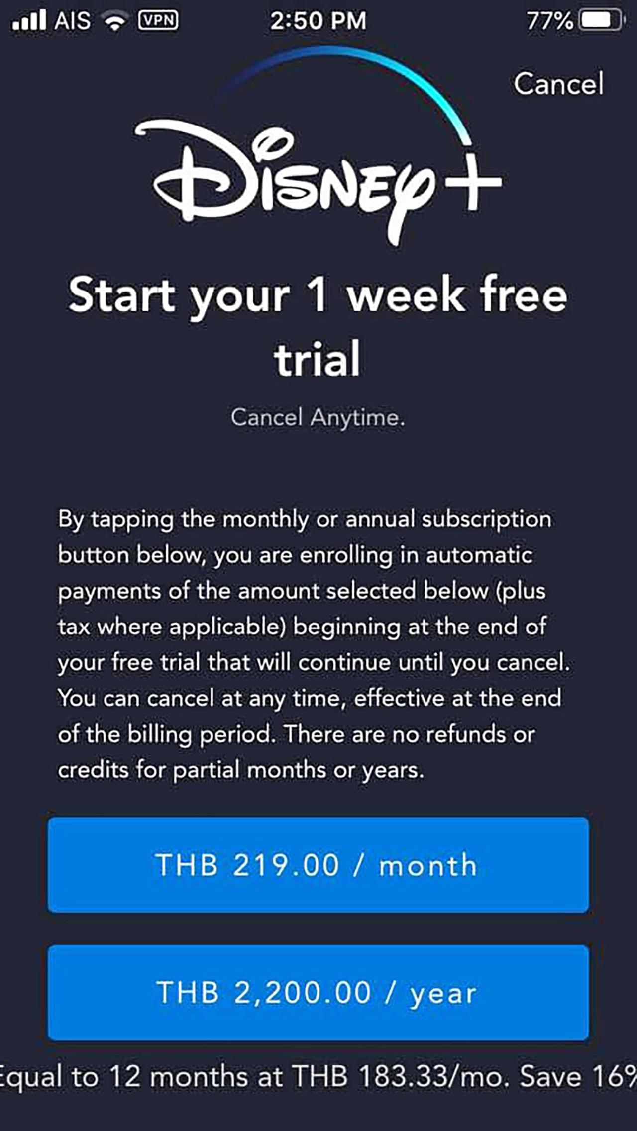 โดยในเฟซบุ๊ก Disney Thai Fanclub ได้โพสต์เตรียมรุกตลาดไทยกับอัตราค่าบริการราว 219 บาท สำหรับรายเดือน และ 2,200 บาทสำหรับรายปีสำหรับสมาชิก 1 ราย สร้างโปรโฟล์ผู้ใช้งานได้ 7 โปรไฟล์ สามารถรับชมพร้อมกันได้สูงสุด 4 อุปกรณ์