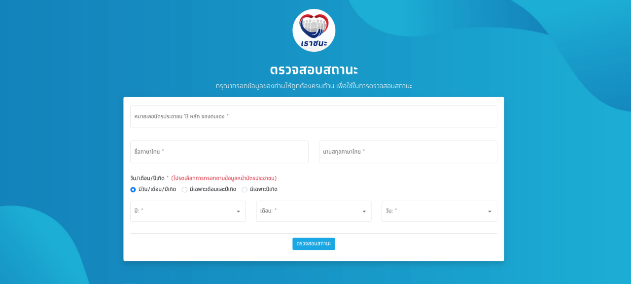 4. เมื่อกรอกข้อมูลครบถ้วนแล้ว กดคำว่า "ตรวจสอบสถานะ"