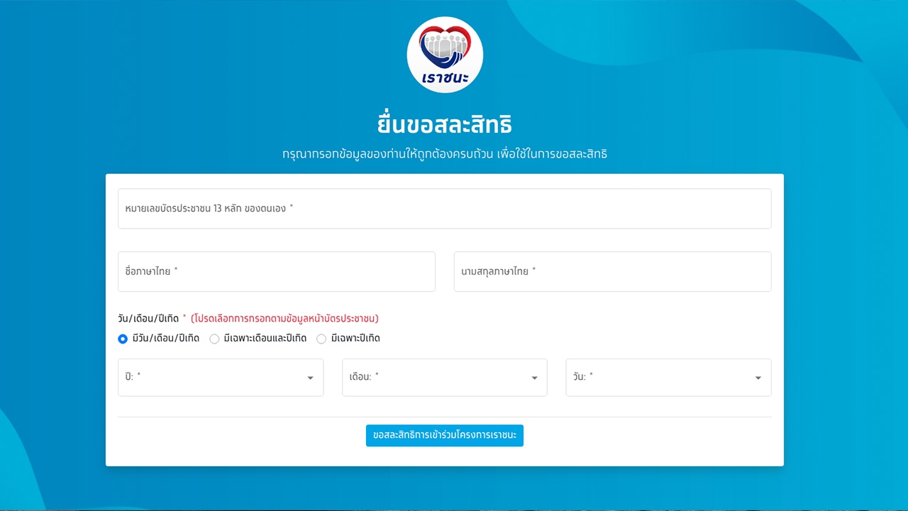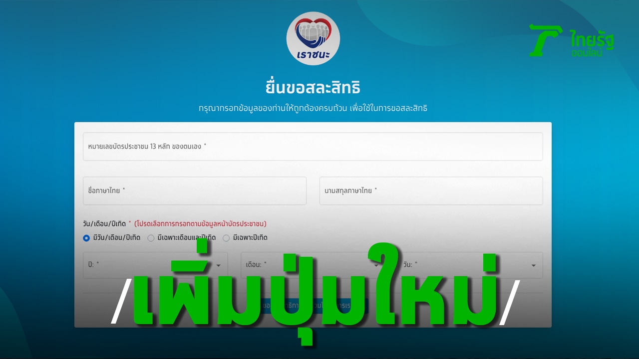 เว็บไซต์ "เราชนะ" เพิ่มปุ่ม "สละสิทธิ์" สำหรับเจ้าหน้าที่ที่ได้รับค่าตอบแทนโดยตรงจากหน่วยงานของรัฐ ให้สามารถสละสิทธิ์รับเงินเยียวยา ได้ตั้งแต่วันนี้เป็นต้นไป