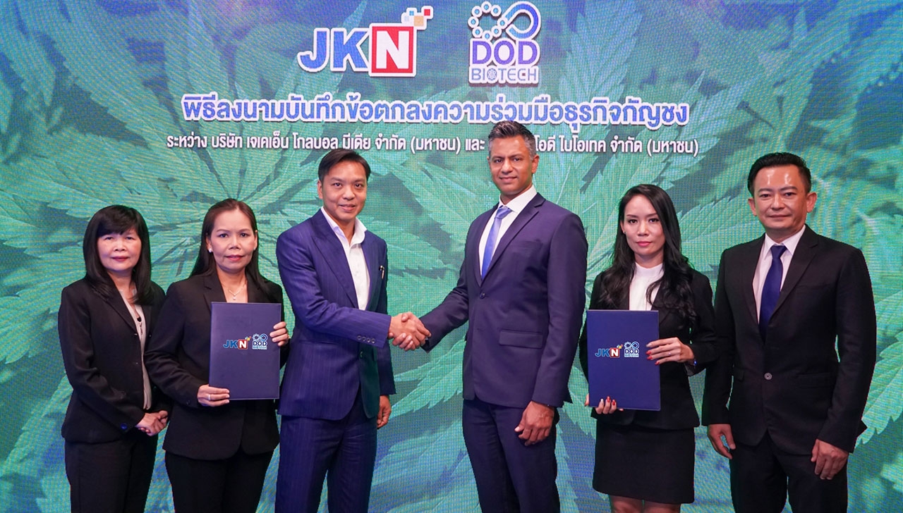 คุณจักรพงษ์ จักราจุฑาธิบดิ์ ประธานเจ้าหน้าที่บริหารและกรรมการผู้จัดการ บริษัท เจเคเอ็น โกลบอล มีเดีย จำกัด (มหาชน) หรือ JKN เปิดเผยว่า “หลังจาก อย. ได้อนุญาตให้มีผลิตภัณฑ์กัญชงในไทย บวกกับกระแสความนิยม ‘กัญชง’ ที่สามารถนำมาใช้เป็นส่วนผสมในผลิตภัณฑ์เสริมอาหารและเครื่องดื่มเพื่อสุขภาพที่มาแรงทั่วโลก ทำให้บริษัทฯ เล็งเห็นโอกาสทางธุรกิจ ในการพัฒนานวัตกรรมผลิตภัณฑ์เสริมอาหารและเครื่องดื่มที่ใช้กัญชงเป็นสารสกัดสำคัญ ซึ่งจุดแข็งของเรา คือ ความเชี่ยวชาญการทำตลาดและเข้าใจพฤติกรรมความต้องการของผู้บริโภคที่หลากหลายเป็นอย่างดี จากที่เราประสบความสำเร็จที่ผ่านมา ยอดขายทะลุเป้าแบบถล่มทลาย อาทิ ผลิตภัณฑ์เสริมอาหาร C-TRIA, Olig Fiber และ Fish Cap เป็นต้น จึงมั่นใจว่าผลิตภัณฑ์เสริมอาหารและเครื่องดื่มที่มีสารสกัดของ “กัญชงแท้” แบบออร์แกนิก ที่คิดค้นและพัฒนาขึ้นโดยบริษัทฯ และมีพันธมิตรยักษ์ใหญ่อย่าง DOD เป็นผู้ผลิตให้ จะสร้างปรากฏการณ์เขย่าวงการผลิตภัณฑ์เสริมอาหารและเครื่องดื่มสุขภาพของเมืองไทยอย่างแน่นอน