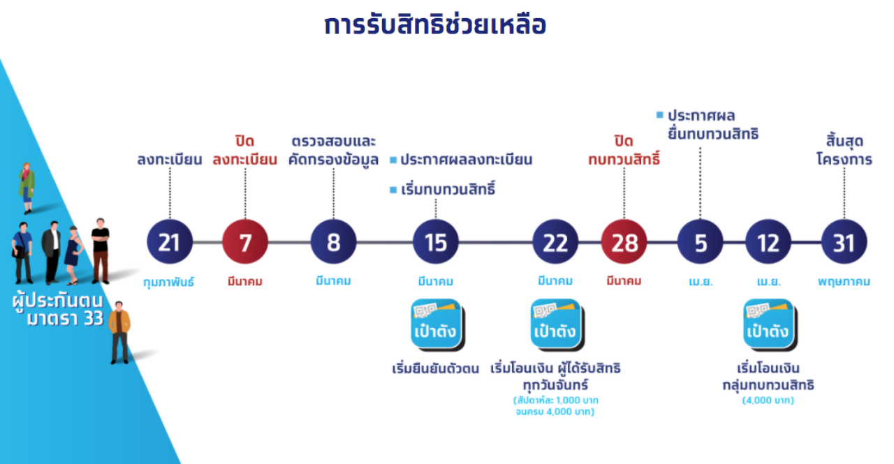 ความคืบหน้าโครงการ "ม.33 เรารักกัน" สนับสนุนวงเงินสิทธิ์ช่วยเหลือ ผู้ประกันตนประกันสังคมมาตรา 33 จำนวน 4,000 บาทต่อคน ได้เปิดให้ผู้ลงทะเบียนเข้าไปตรวจสอบสิทธิ์ผ่านเว็บไซต์ www.ม33เรารักกัน.com สำหรับผู้ที่ตรวจสอบสิทธิ์แล้ว "ไม่ได้รับสิทธิ์ตามโครงการ ม.33 เรารักกัน" สามารถ "ขอทบทวนสิทธิ์" ผ่านเว็บไซต์เดียวกันได้ ตั้งแต่ 15-28 มี.ค. 64