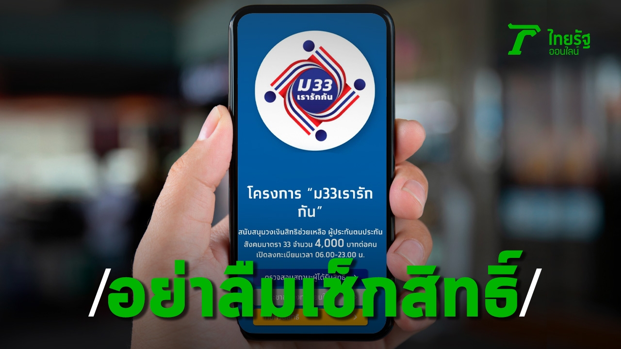 แนะวิธีตรวจสอบสิทธิ์ "ม.33 เรารักกัน" ผ่านเว็บไซต์ www.ม33เรารักกัน.com รับสิทธิ์เงินเยียวยา 4,000 บาท แนะคนไม่ผ่าน "ขอทบทวนสิทธิ์"