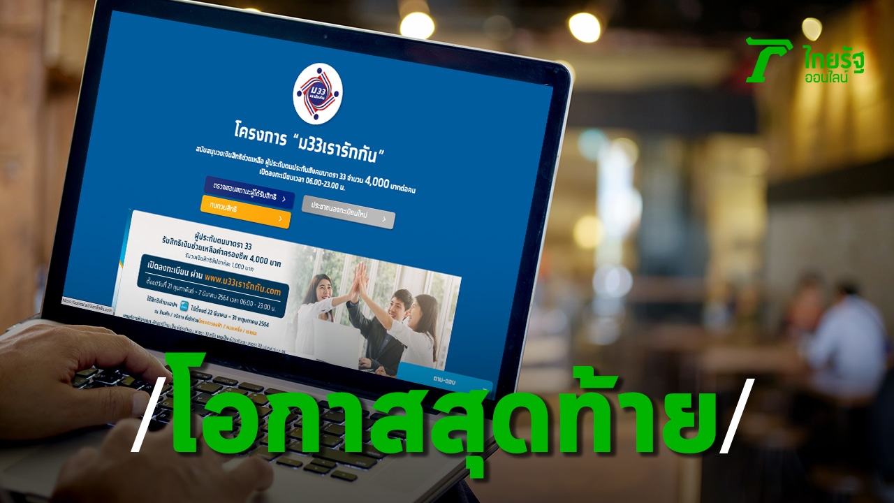 โค้งสุดท้าย! รีบยื่นทบทวนสิทธิ “ม33เรารักกัน” ผ่านเว็บไซต์ ก่อนระบบปิดรับ 28 มี.ค.นี้ ส่วนกลุ่มที่ไม่มีสมาร์ทโฟน หรือลงทะเบียนไม่สำเร็จ ให้นำบัตรประชาชน ติดต่อสำนักงานประกันสังคมพื้นที่ทั่วประเทศ