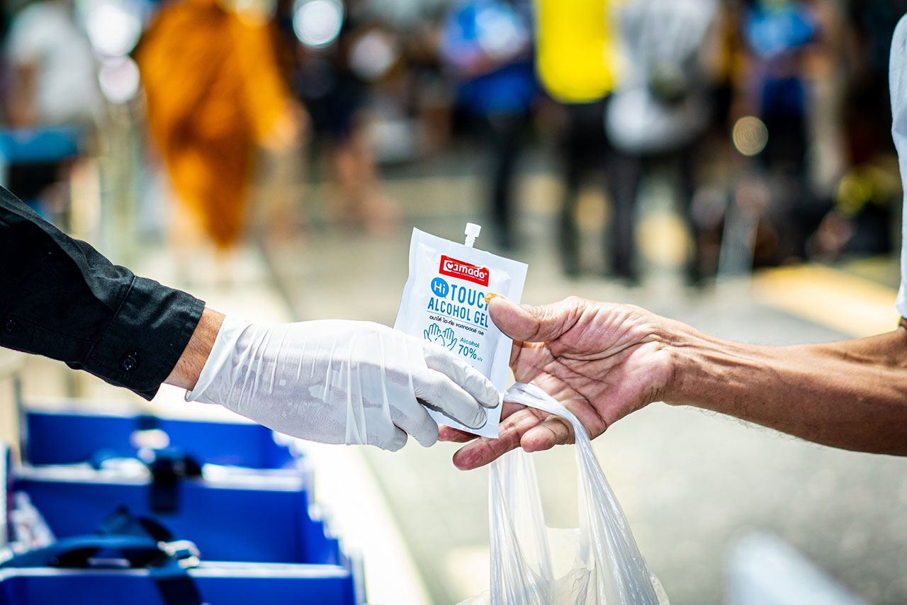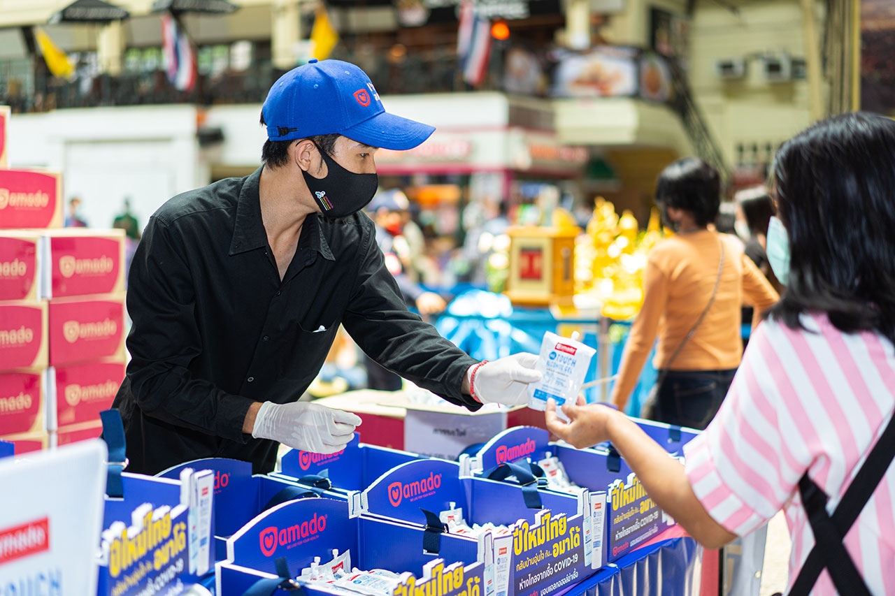 นายธนาตรัยฉัตร ภูโชคอนันต์ ประธานเจ้าหน้าที่บริหาร บริษัท อมาโด้ กรุ๊ป จำกัด กล่าวว่า สำหรับช่วงเทศกาลแห่งการเฉลิมฉลองปีใหม่ไทย 2564 นี้ สถานการณ์การแพร่ระบาดของโรคโควิด-19 กลับมาอีกระลอกทำให้จำนวนผู้ติดเชื้อพุ่งสูงขึ้นอย่างมาก หลายคนได้รับผลกระทบจากการต้องกักตัวและไม่สามารถเดินทางข้ามจังหวัดได้ อมาโด้ จึงมีความห่วงใยและใส่ใจสุขภาพของพี่น้องชาวไทยในช่วงเทศกาลสงกรานต์ที่ต้องเดินทางกลับบ้านเพื่อไปฉลองกับครอบครัว เนื่องจากโรคโควิด-19 ติดต่อและแพร่ระบาดอย่างรวดเร็ว และยังไม่มีวัคซีนรักษาโรคนี้ให้หายขาดได้ นอกจากการระมัดระวังอุบัติเหตุต่างๆ แล้ว สิ่งที่ต้องระวังไม่น้อยกว่าเรื่องดังกล่าวคือการใส่ใจเรื่องสุขภาพอนามัย ด้วยการสวมใส่หน้ากากอนามัย และพกแอลกอฮอล์ล้างมือเพื่อให้ปลอดภัยและห่างไกลจากเชื้อไวรัสโควิด-19 โดยสงกรานต์ปีนี้ อมาโด้จึงเดินทางลงพื้นที่แจกเจลแอลกอฮอล์ อมาโด้ไฮ-ทัช ซึ่งได้รับความร่วมมือจาก 5 ภาคีหลัก ได้แก่ กองบังคับการตำรวจทางหลวง, การรถไฟแห่งประเทศไทย, การทางพิเศษแห่งประเทศไทย, บริษัท ขนส่ง จำกัด และมูลนิธิเมาไม่ขับ ที่ทำหน้าที่อำนวยความสะดวกและความปลอดภัยการเดินทางให้กับประชาชน และช่วยเราส่งมอบความห่วงใยไปยังพี่น้องคนไทย ด้วยการแจกเจลแอลกอฮอล์ อมาโด้ไฮ-ทัช จำนวน 160,000 ซองกว่า 8,000,000 มิลลิลิตร มูลค่ากว่า 2,000,000 บาท ผ่านโครงการ “ปีใหม่ไทย กลับบ้านอุ่นใจกับอมาโด้ ห่างไกลจากเชื้อ COVID-19”
