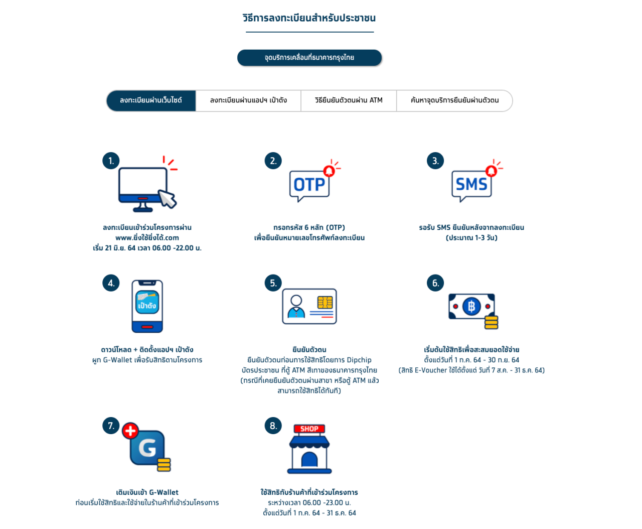 1. ลงทะเบียนเข้าร่วมโครงการผ่าน www.ยิ่งใช้ยิ่งได้.com เริ่ม 21 มิ.ย. 64 เวลา 06.00-22.00 น.