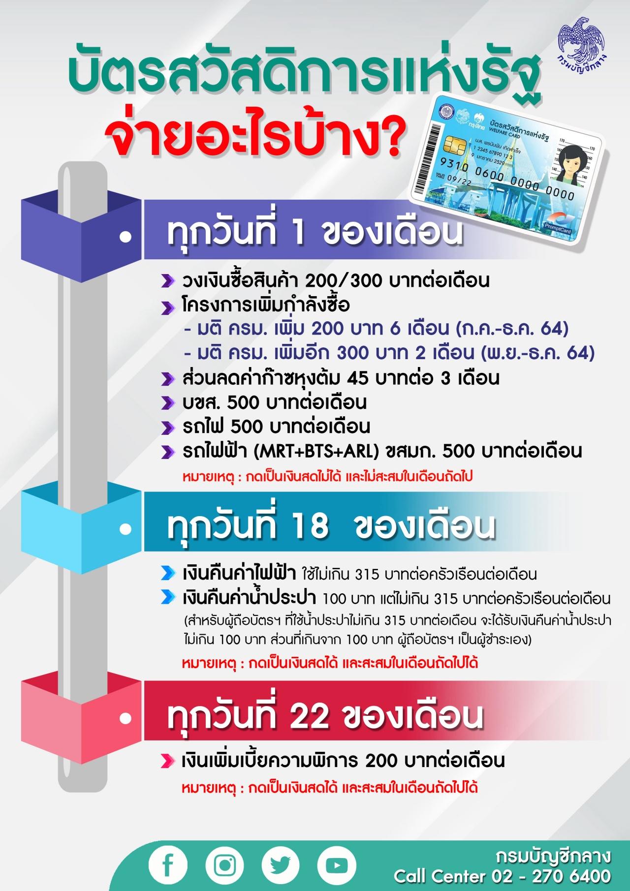 "กรมบัญชีกลาง" แจงการจ่ายเงินเข้า "บัตรสวัสดิการแห่งรัฐ" เดือน พ.ย.-ธ.ค. 2564 เช็กชัดๆ ผู้มีสิทธิ์จะได้รับเงินค่าอะไร เงินเข้าวันไหนบ้าง