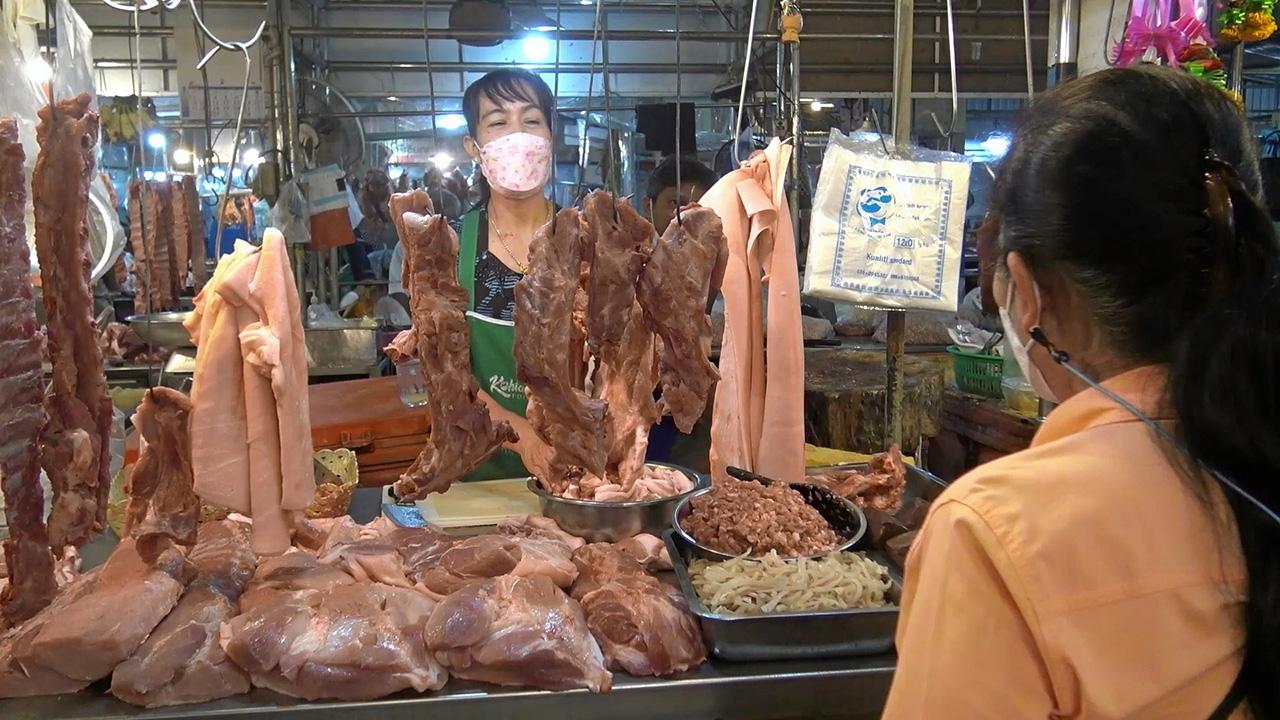 โดยราคาล่าสุด วันพระที่ 2 ม.ค.65 (ราคาหมูปรับขึ้น-ลงทุกวันพระ เพราะโรงฆ่าสัตว์ปิด) สมาคมผู้เลี้ยงสุกรแห่งชาติ ประกาศราคาแนะนำขายเพิ่มขึ้นทุกชนิด โดยหมูเป็นขึ้นมาอยู่ที่ กก.ละ 98-108 บาท ขายส่ง (หมูเนื้อแดง) กก.ละ 156-172 บาท และขายปลีก กก.ละ 194-214 บาท แต่ตลาดสดที่รับหมูเนื้อแดงมาเป็นทอดที่ 2 ที่ 3 เกิน กก.ละ 220 บาท
