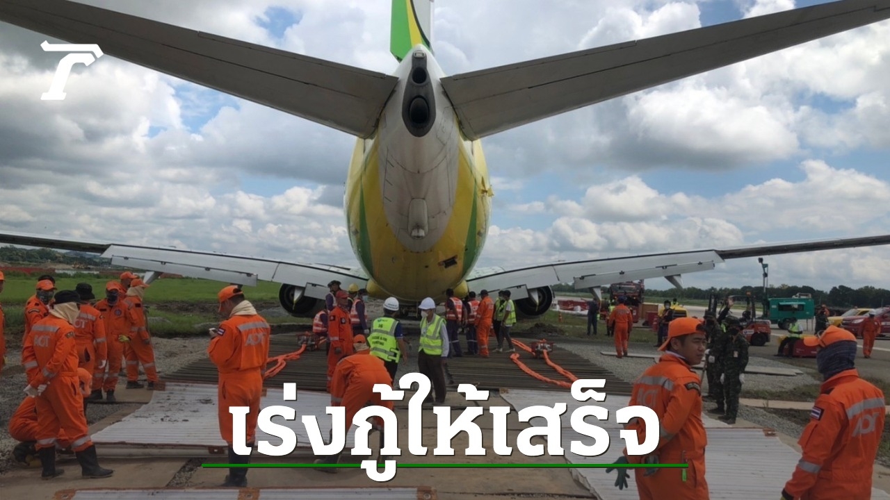 กรมท่าอากาศยาน เผย เจ้าหน้าที่เร่งกู้ "เครื่องบินนกแอร์" ที่ไถลออกนอกรันเวย์ มั่นใจถ้าเคลียร์จบ สนามบินเชียงรายเปิดใช้ได้