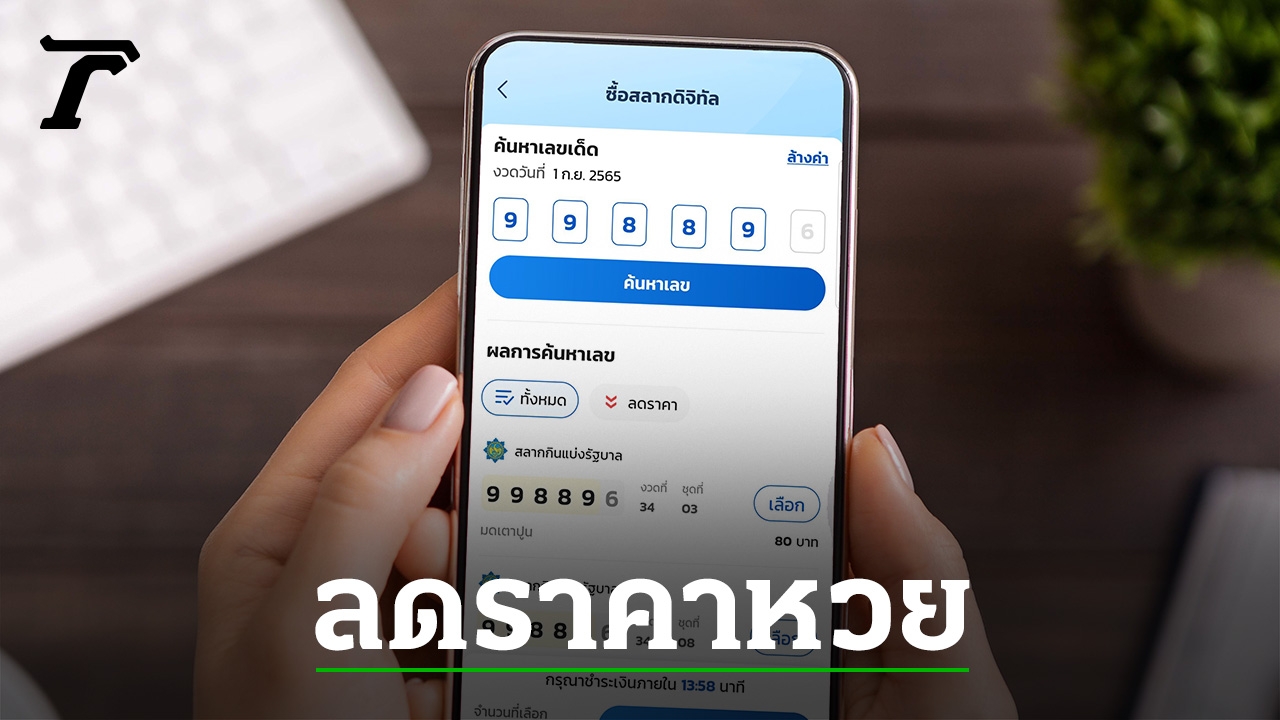 เริ่มงวดนี้ สำนักงานสลากฯ เพิ่มเมนูลดราคาสลากให้ร้านค้าสามารถลดราคา "สลากดิจิทัล" ได้ ประชาชนมีโอกาสซื้อสลากในราคาที่ถูกกว่า 80 บาท