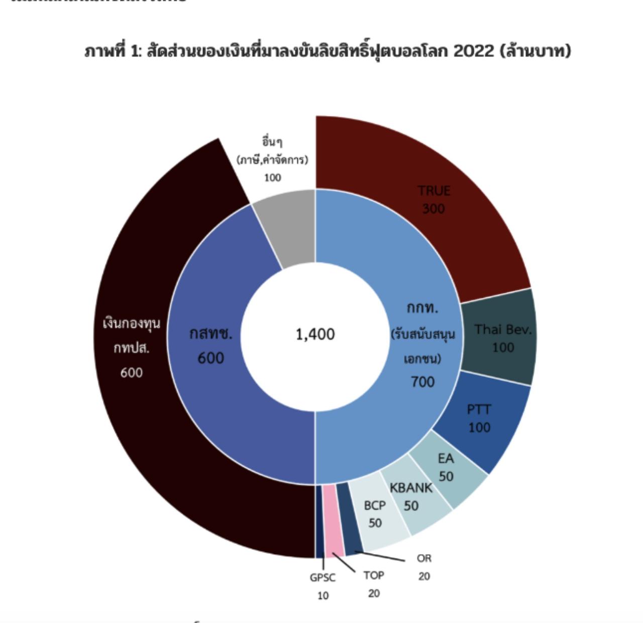 นอกจากนี้ หากดูผิวเผินจากสัดส่วนของผู้ที่มีส่วนลงขันในค่าลิขสิทธิ์ฟุตบอลโลกแล้ว เอกชนอื่นที่มีส่วนในการช่วยจ่ายค่าลิขสิทธิ์ฟุตบอลโลก 2022 จะไม่ใช่ผู้ประกอบการด้าน media แต่โดยหลักแล้วผู้ประกอบการกลุ่มอื่นนอกจากทรูเองก็ควรได้รับสิทธิ์ด้วย แม้ว่าไม่ได้มีส่วนในการลงขันโดยตรง เนื่องจากเงินในการลงขันมาจากกองทุน กทปส. ซึ่งมีแหล่งที่มาของเงินกองทุนส่วนหนึ่งมาจากรายได้ของรายได้ผู้รับใบอนุญาตตามกฎหมายว่าด้วยการประกอบกิจการกระจายเสียงและกิจการโทรทัศน์ และตามกฎหมายประกอบกิจการโทรคมนาคม