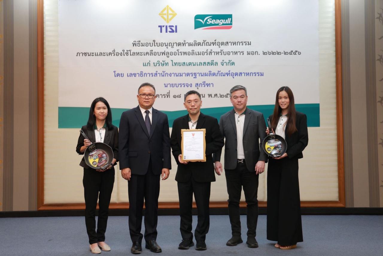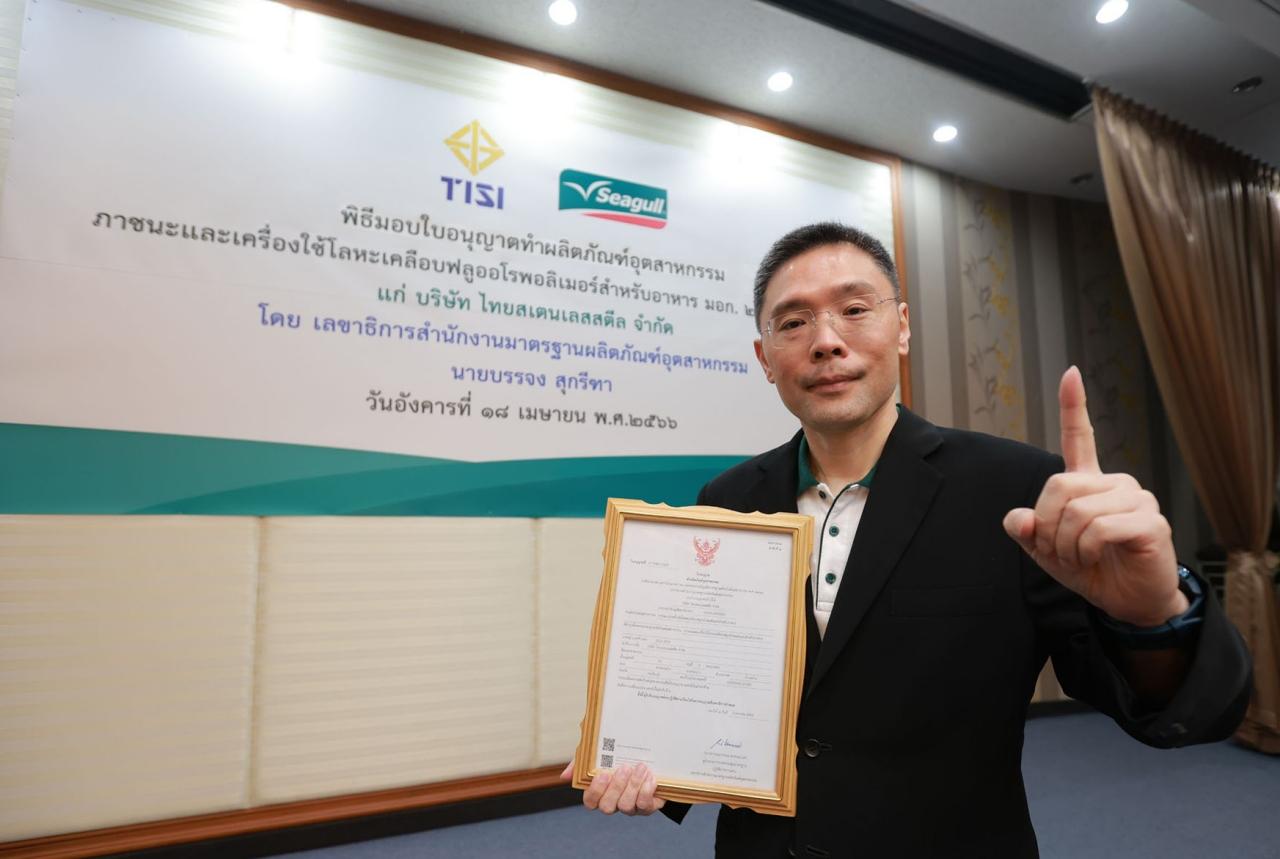 นายอรุณ เรืองจรุงพงศ์ ประธานเจ้าหน้าที่ฝ่ายบริหาร บริษัท ไทยสเตนเลสสตีล จำกัด ผู้ผลิตและจัดจำหน่ายเครื่องครัวตราซีกัล หรือ Seagull กล่าวว่า เรามีความภาคภูมิใจอย่างยิ่งที่เครื่องครัวนอนสติ๊กซีกัลได้ผ่านการทดสอบและได้รับใบอนุญาต มอก. รายแรกของไทย