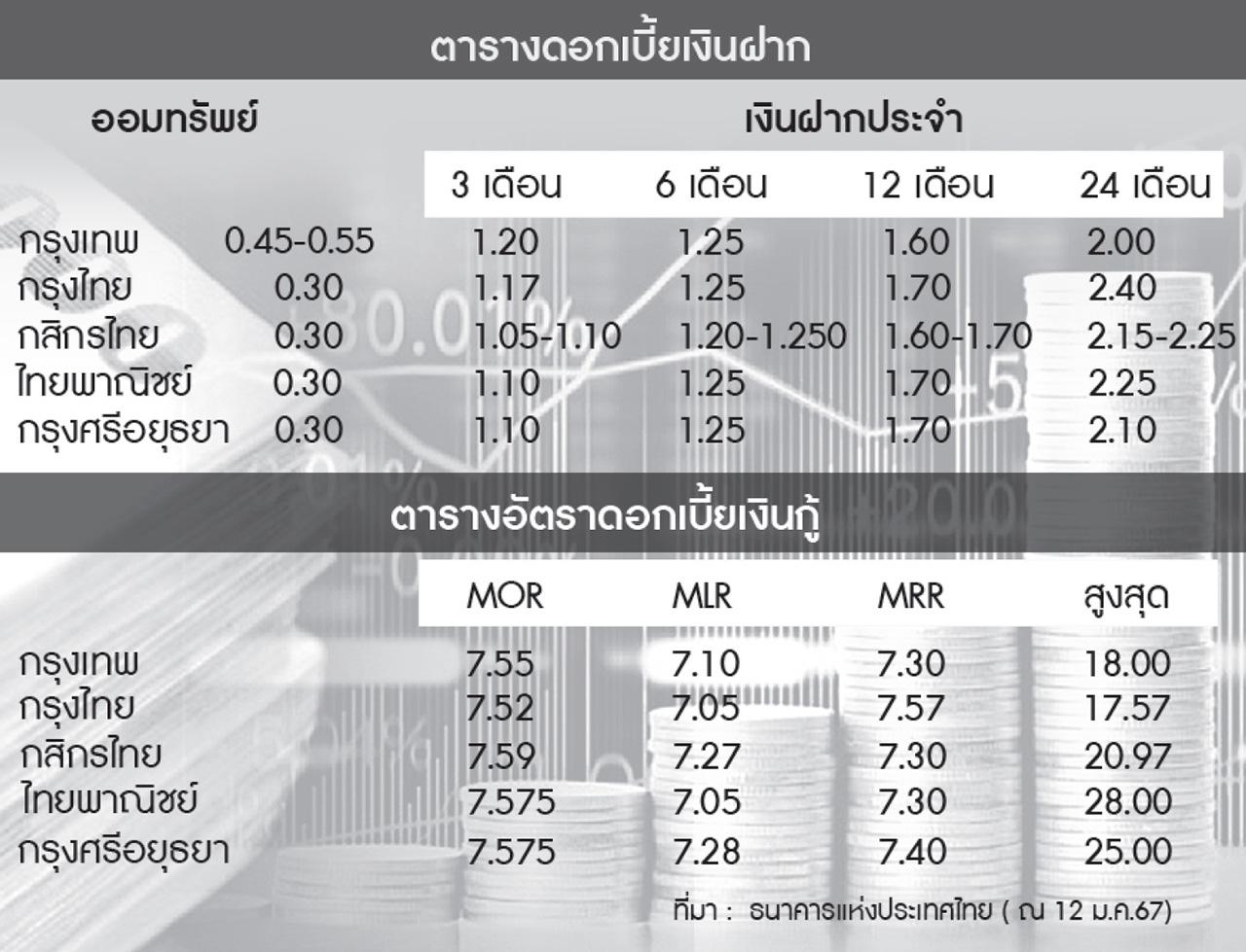 แต่อัตราดอกเบี้ยเงินฝากกลับต่ำเตี้ยเรี่ยดินเพียง 1.60-1.80% ต่อปี ขณะที่อัตราดอกเบี้ยเงินกู้ลูกค้าชั้นดีหรือลูกค้ารายใหญ่อยู่ที่ 1-3.0% แต่สินเชื่อหรือเงินกู้ของบุคคลธรรมดาดันขึ้นไปอยู่ที่ระดับ 7.50% ถ้าเป็นพวกวิสาหกิจขนาดย่อมและขนาดกลาง (SMEs) ดอกเบี้ยเงินกู้อาจปรับขึ้นไปสูงโด่งเกินกว่า 10-20%ต่อปีได้ ตามดุลพินิจของผู้ให้กู้ (จะกล่าวต่อไปในตอนท้าย)