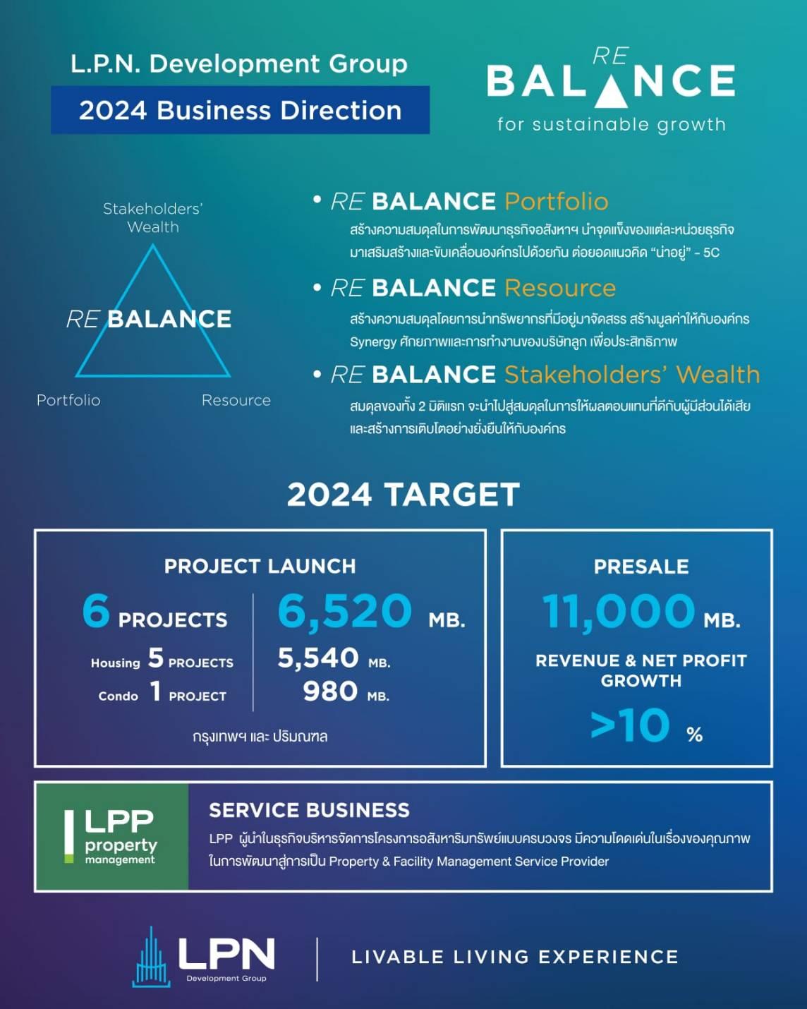 สำหรับ การเดินหน้าใหม่ของ LPN นั้น จะถูกรีโมเดลธุรกิจ ด้วย 3 กลยุทธ์สำคัญ สู่ การสร้างสมดุลพอร์ต ทั้งการลงทุนพัฒนาโครงการที่อยู่อาศัย ที่ต้องแม่นขึ้น และ การสร้างธุรกิจใหม่ เพื่อรักษาอัตราการเติบโตขององค์กร ในช่วงเวลาที่เจ้าตัวระบุเต็มคำว่า “อสังหาฯ หมดยุค Sunrise” แล้ว