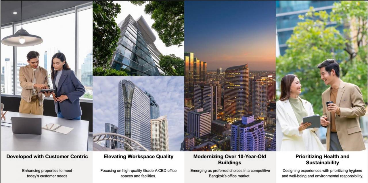 ซึ่งจะเป็นการเพิ่มศักยภาพให้กับทรัพย์สินของกองทรัสต์ และตอกย้ำสถานะของเจ้าตลาด อาคารสำนักงานเกรด A เพิ่มโอกาสใหม่ๆ ให้กับธุรกิจ จากความต้องการในอนาคตขององค์กรชั้นนำระดับโลกที่กำลังมองหาออฟฟิศยุคใหม่ใจกลางย่านธุรกิจสำคัญของกรุงเทพฯ อีกด้วย