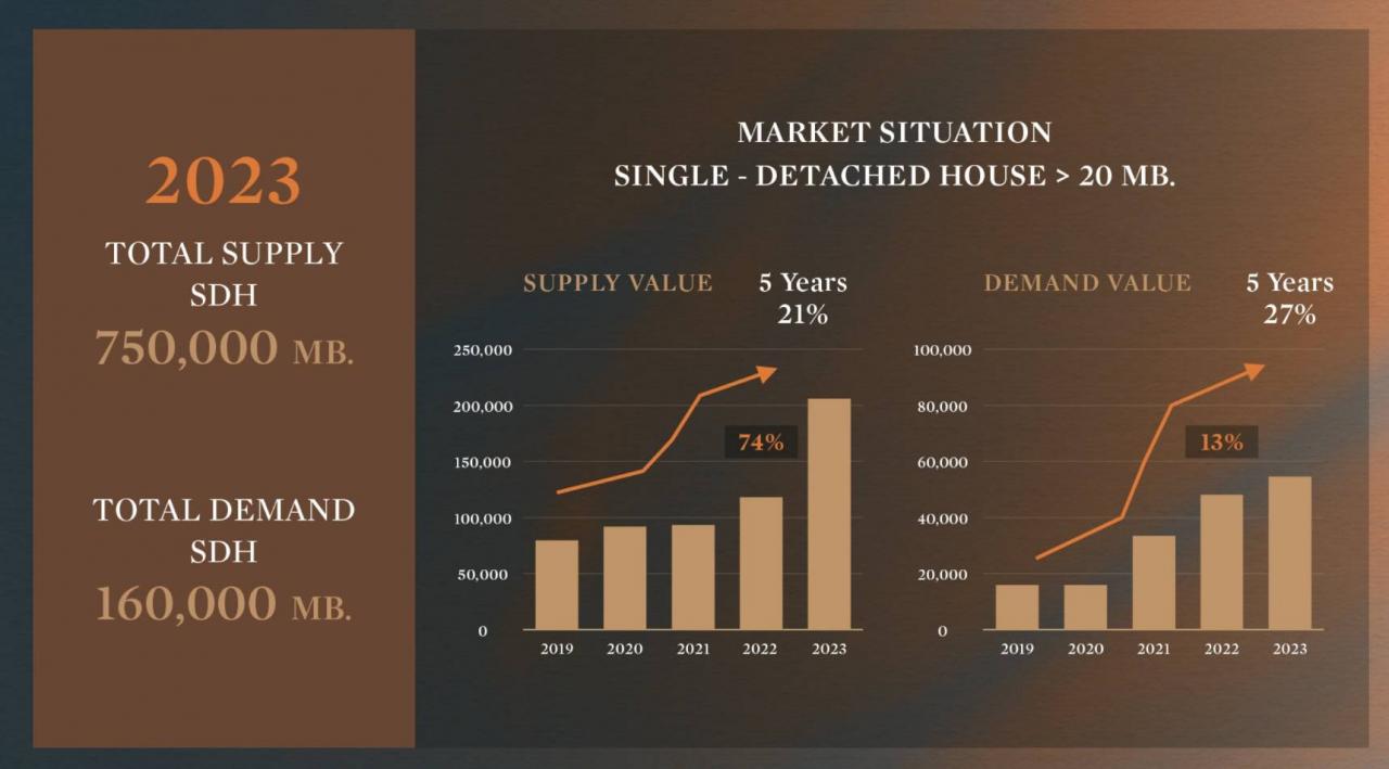 SC Asset ยังสามารถรักษาตำแหน่งผู้นำตลาดได้ โดยเฉพาะในกลุ่มบ้านหรู หรือ Luxury House ราคา 20 ล้านบาทขึ้นไป ท่ามกลางผู้พัฒนาฯ รายใหม่ๆ เข้ามาแข่งขันในตลาด ซัพพลายล้น 2 แสนล้านบาท แต่ดีมานด์ยังเติบโตได้ดี 6 หมื่นล้านบาท