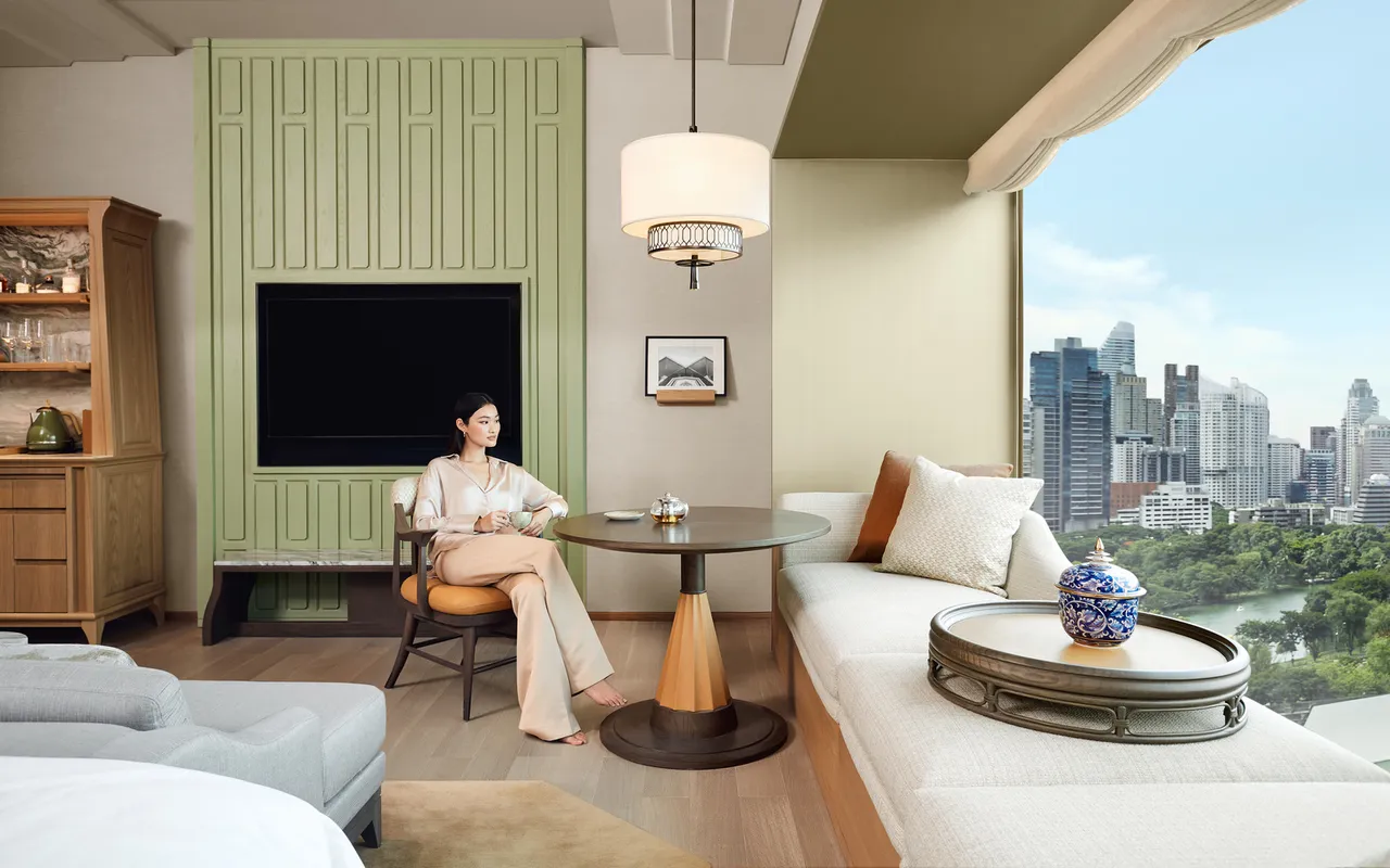 เช่น การวางผังโถงทางเดินส่วนตัวหน้าห้อง (Single Corridor) ที่ทำให้ห้องพักทุกห้องสามารถมองเห็นความร่มรื่นของสวนลุมพินีได้อย่างเต็มตาผ่านช่องหน้าต่างที่เป็นกระจกบานใหญ่สูงจากพื้นจรดเพดาน และยังเสริมความพิเศษด้วยโซฟาหรูริมหน้าต่าง ให้ลูกค้าได้พักผ่อนชื่นชมธรรมชาติอันแสนสงบจากภายในห้องพักที่หรูหราทันสมัยได้อย่างลงตัว