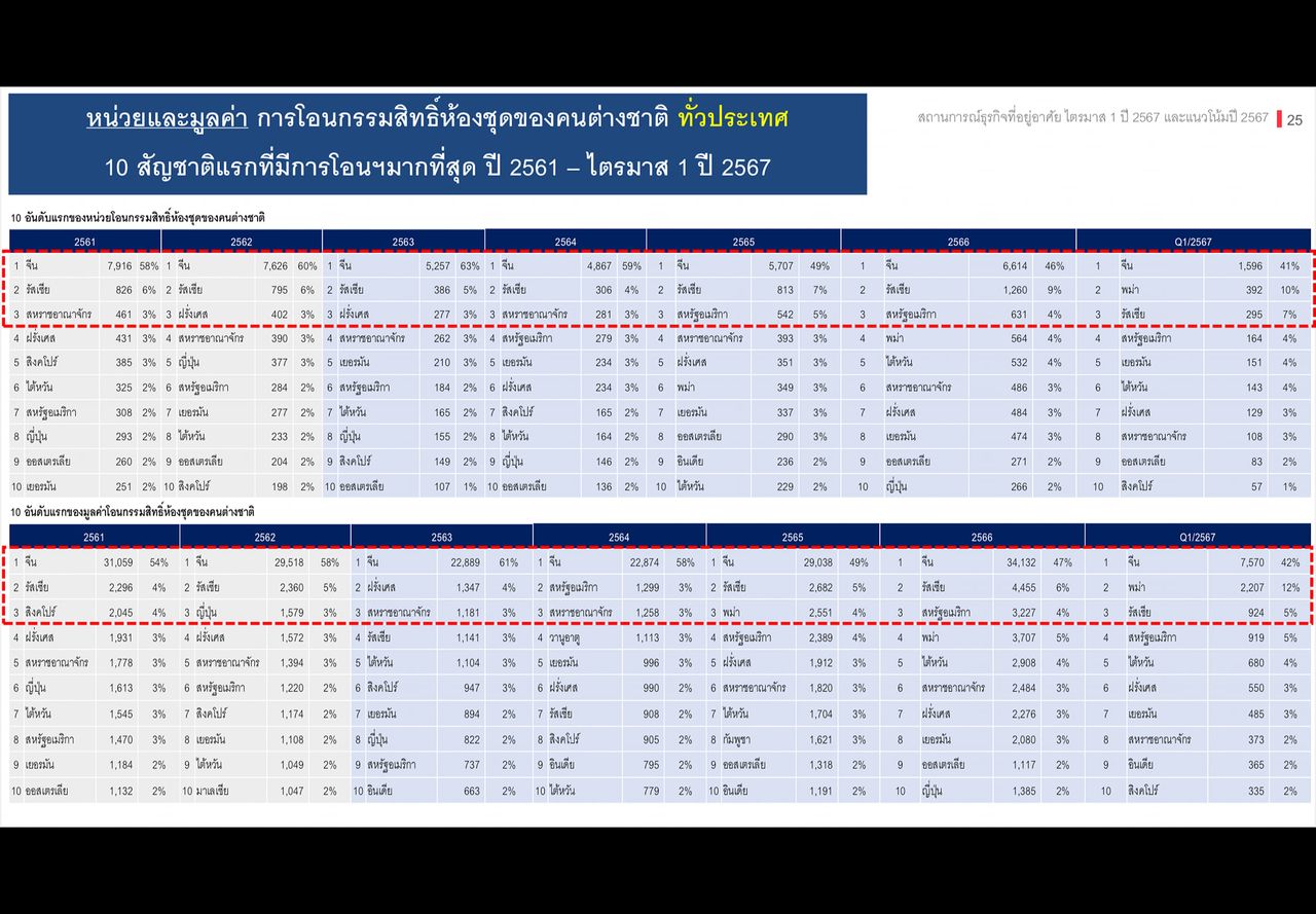 สำหรับสัญชาติที่มีการซื้อและโอนฯ คอนโดฯ ไทยมากที่สุด ณ ไตรมาส 1 ปี 2567 เกิดการเปลี่ยนแปลงในแง่ตำแหน่งเช่นกัน