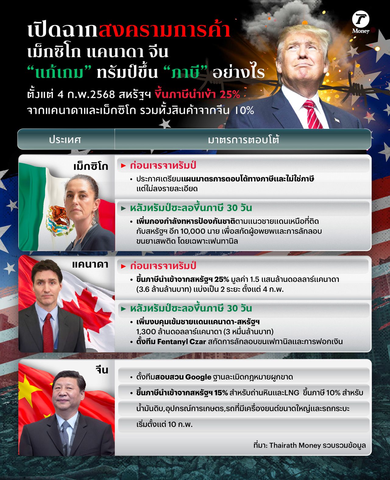 Thairath Money สรุปวิธีแก้เกมสงครามการค้าของเม็กซิโก แคนาดา จีน หลังสหรัฐฯ สั่งขึ้นภาษีศุลกากร เริ่มมีผลตั้งแต่ 4 ก.พ.