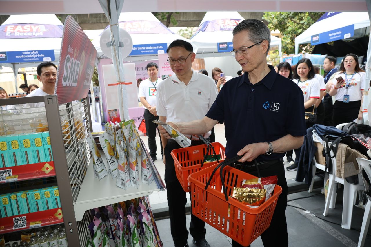 ด้าน ยุทธศักดิ์ ภูมิสุรกุล ประธานเจ้าหน้าที่บริหาร บริษัท ซีพี ออลล์ จำกัด (มหาชน) ผู้บริหารเซเว่น อีเลฟเว่น และเซเว่น เดลิเวอรี่ กล่าวว่า ถือเป็นโอกาสอันดีของบริษัทฯ ที่เข้าร่วมในงาน “Bangkok Bank Fair ช็อปฉ่ำ กระตุ้นเศรษฐกิจ รับสิทธิ์ Easy E-Receipt” ครั้งนี้ ซึ่งนอกจากจะเป็นช่องทางจำหน่ายสินค้าให้แก่กลุ่มผู้ประกอบการ OTOP ที่เป็นพันธมิตรกับบริษัทแล้ว ภายในงานยังมีกลุ่มลูกค้าเอสเอ็มอีที่มีศักยภาพภายใต้การดูแลของธนาคารกรุงเทพร่วมออกบูธจำหน่ายสินค้าหลากหลายประเภท