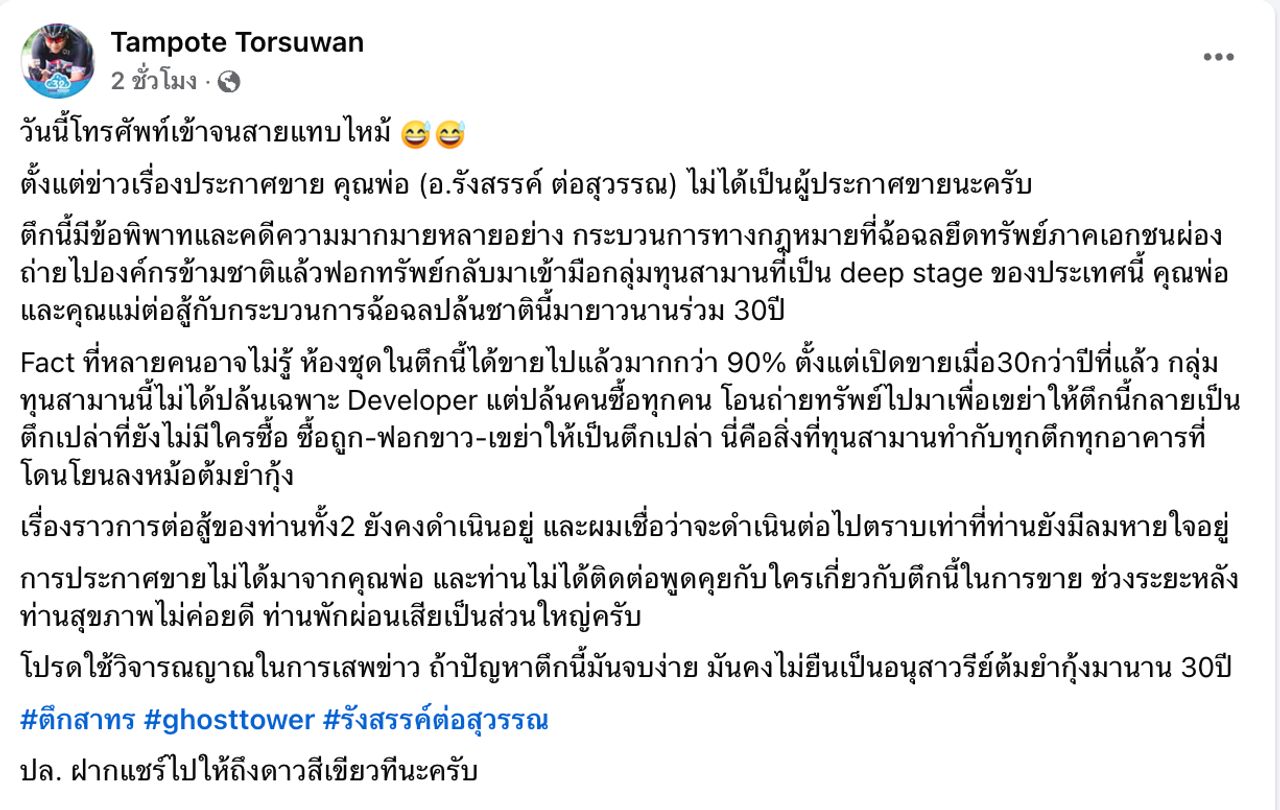 โปรดใช้วิจารณญาณในการเสพข่าว ถ้าปัญหาตึกนี้มันจบง่าย มันคงไม่ยืนเป็นอนุสาวรีย์ต้มยำกุ้งมานาน 30ปี "