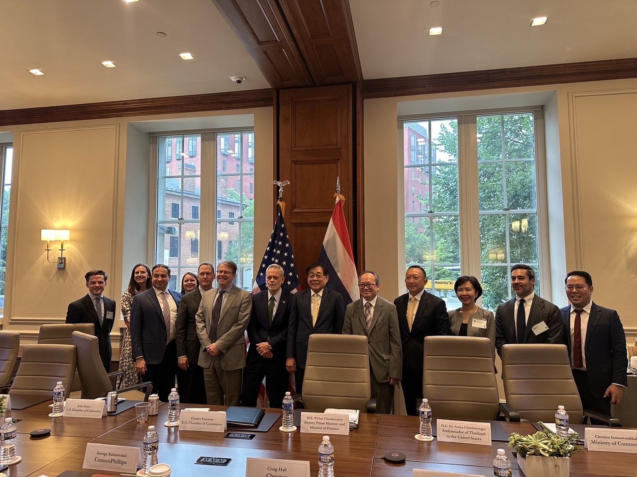 ผู้สื่อข่าวรายงานว่า จากที่นายพิชัย ชุณหวชิร รองนายกรัฐมนตรีและ รมว.คลัง ได้เดินทางไปสหรัฐอเมริกา เพื่อนำคณะทีมไทยแลนด์เจรจาภาษีตอบโต้สหรัฐฯ นั้น โดยนายพิชัยได้โพสต์เฟซบุ๊กส่วนตัว มีข้อความระบุว่า ภารกิจแรกในการเยือนสหรัฐฯ ครั้งนี้ คือการพบกับหอการค้าแห่งสหรัฐฯ นำโดยนาย Charles Freeman, Senior Vice President, Asia และคณะผู้แทนระดับสูงจากบริษัทชั้นนำของสหรัฐฯ ที่ลงทุนและดำเนินธุรกิจในประเทศไทย
