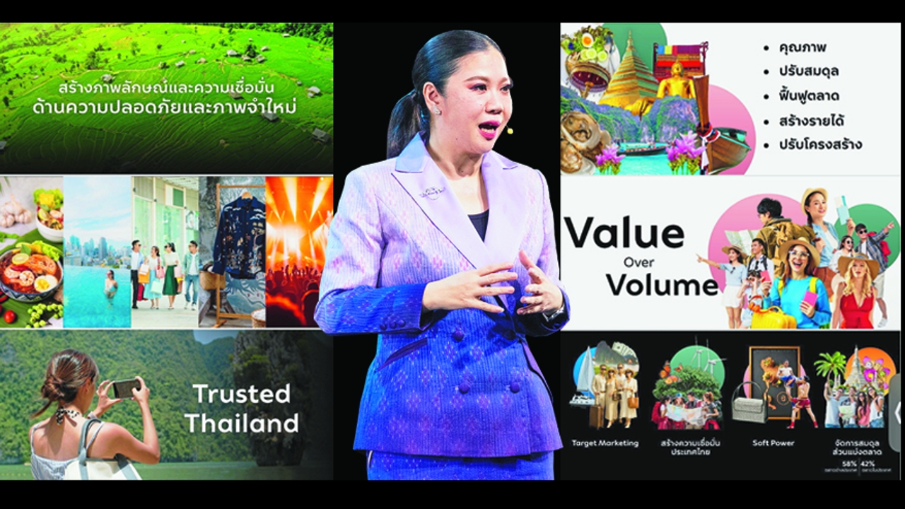 ผู้ว่าการ ททท.กล่าวว่า การก้าวสู่ปี 2569 ยังเต็มไปด้วยความท้าทายรอบด้าน เพราะกำลังสู้กับคู่แข่งมืออาชีพมากขึ้นทุกปีในอุตสาหกรรมการท่องเที่ยวโลก และพฤติกรรมนักท่องเที่ยวที่เปลี่ยนไปตามกระแสโซเชียล ททท. จึงจะทำการตลาดในรูปแบบ Value over Volume หรือมูลค่ามากกว่าปริมาณ โดยมองว่าเมื่อ Value นำ Volume จะตามมา