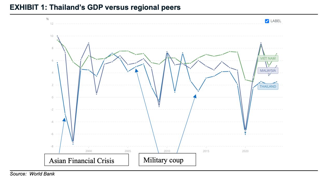 สอดคล้องกับมุมมองของ “วรุตม์ พรหมบุญ” บริษัท Bondcritic ฮ่องกง ผู้เชี่ยวชาญด้านตราสารหนี้ ได้อธิบายถึงปัญหาเชิงโครงสร้างของเศรษฐกิจไทยในรายงาน Bond Market Monitor: Thailand Unsmiled ว่า แม้ไทยจะไม่ใช่รัฐล้มเหลว แต่ปัญหาสถาบันทางการเมืองและเศรษฐกิจที่เรื้อรังได้จำกัดศักยภาพการเติบโต