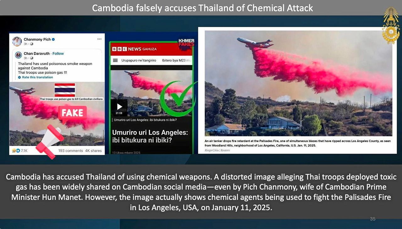 ความขัดแย้งไทย-กัมพูชาครั้งล่าสุด จึงคือจุดที่ข่าวปลอมพัฒนาไปสู่การเป็น “อาวุธดิจิทัล” อย่างแท้จริง คลิปสงครามรัสเซีย-ยูเครนถูกนำมาอ้างว่าเป็นการโจมตีของไทย, ภาพเกมจำลองถูกนำมาบิดเบือนเป็นเครื่องบิน F-16 ของไทยตก, การนำภาพละครไทย มาอ้างว่าเป็นทหารไทยที่ฆ่าชาวกัมพูชา หรือการเกณฑ์ชาวบ้าน เด็ก และคนชราออกมาเล่นบทผู้ถูกกระทำ