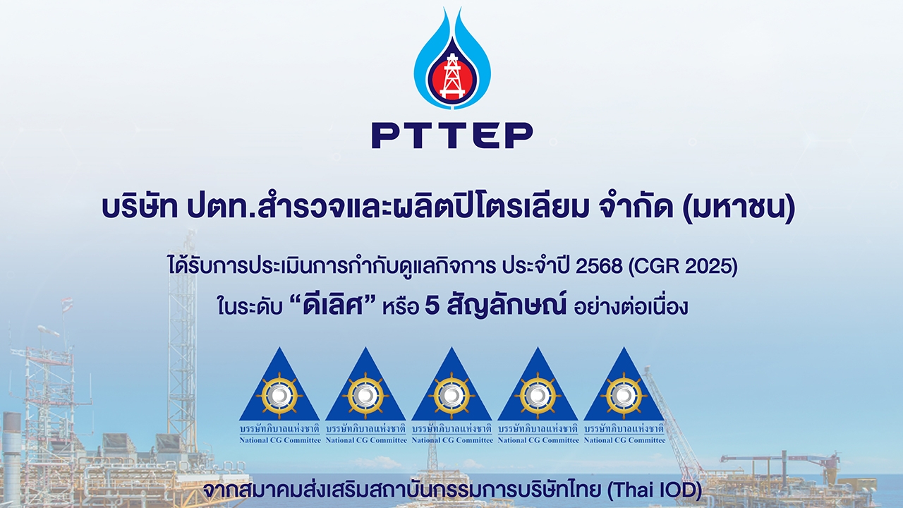 บริษัท ปตท.สำรวจและผลิตปิโตรเลียม จำกัด (มหาชน) หรือ ปตท.สผ. ได้รับการประเมินด้านการกำกับดูแลกิจการในระดับดีเลิศ (Excellent) หรือ 5 สัญลักษณ์ ซึ่งเป็นระดับสูงสุด ต่อเนื่องเป็นปีที่ 24 และได้รับการจัดอันดับอยู่ใน Top Quartile ของกลุ่มบริษัทจดทะเบียนที่มีมูลค่าทางการตลาดไม่น้อยกว่า 100,000 ล้านบาท จากการสำรวจการกำกับดูแลกิจการบริษัทจดทะเบียน ประจำปี 2568 (Corporate Governance Report of Thai Listed Companies หรือ CGR 2025) ซึ่งจัดขึ้นโดยสมาคมส่งเสริมสถาบันกรรมการบริษัทไทย (Thai IOD) สะท้อนถึงความมุ่งมั่นของ ปตท.สผ. ในการดำเนินธุรกิจภายใต้หลักการกำกับดูแลกิจการที่ดี อันเป็นรากฐานการพัฒนาองค์กรที่แข็งแกร่งและยั่งยืน