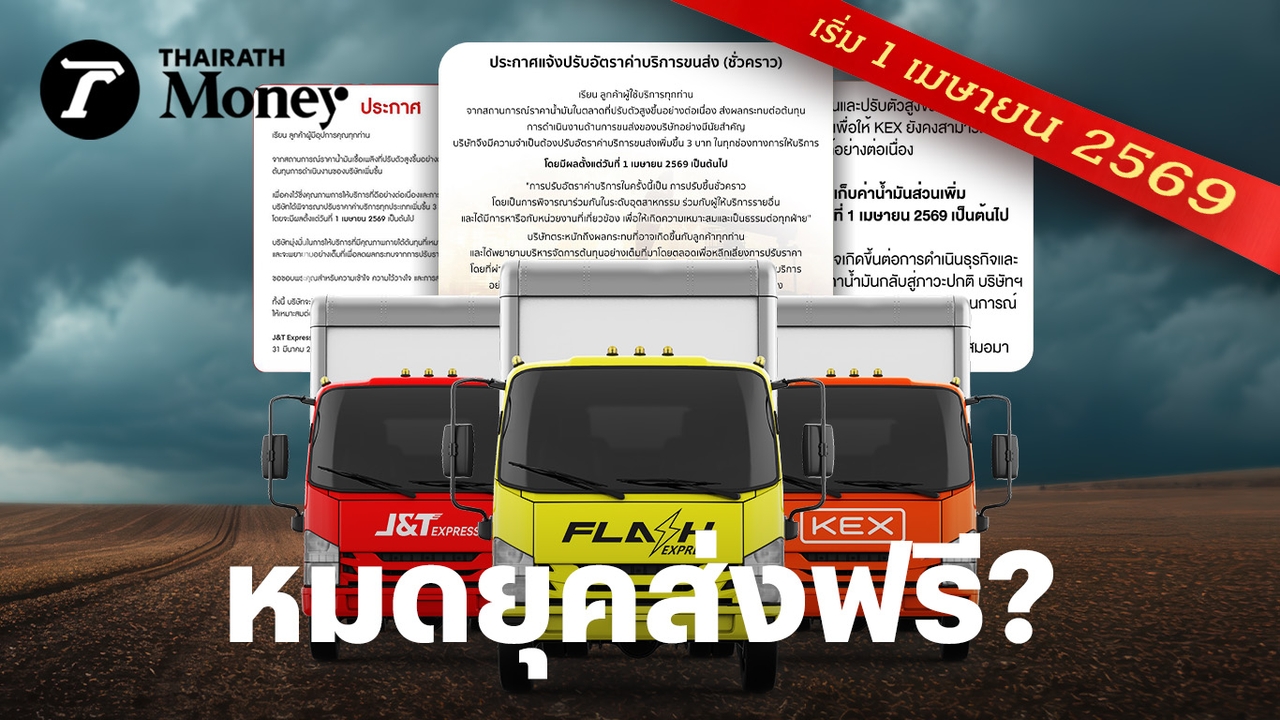 วิเคราะห์ 3 ยักษ์ขนส่ง KEX-Flash-J&T ประกาศขึ้นค่าขนส่ง 3 บาท/ชิ้น เริ่ม 1 เม.ย. 69 เซ่นพิษน้ำมันแพง ส่องผลกระทบร้านค้าออนไลน์ จุดเปลี่ยนผู้บริโภคที่อาจทำให้ คำว่า“ส่งฟรี”เป็นเรื่องยาก!