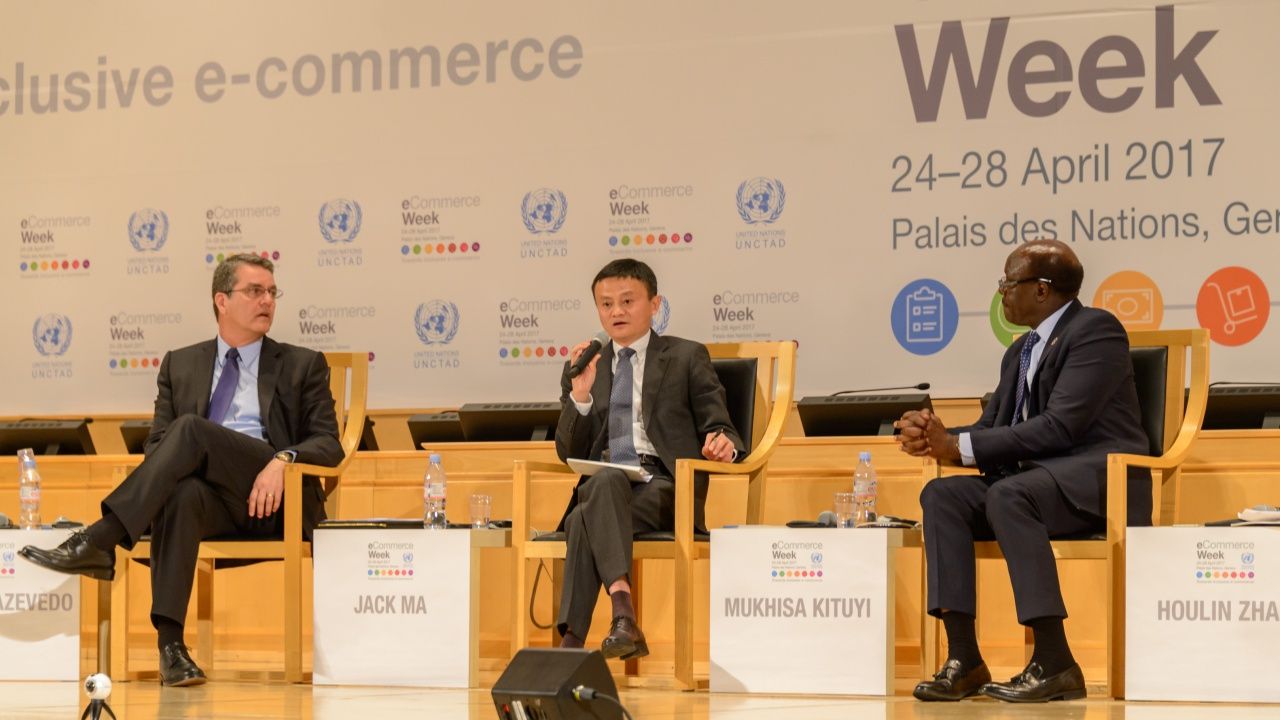 เมื่อเร็วๆ นี้ ในงานสัมมนาประจำปี “E-Commerce Week” จัดขึ้นโดย องค์กรการประชุมสหประชาชาติว่าด้วยการค้าและการพัฒนา (UNCTAD) เพื่อเปิดเวทีแลกเปลี่ยนความรู้และความเข้าใจในด้านการส่งเสริมธุรกิจอีคอมเมิร์ซข้ามชาติในประเทศที่ยังขาดแคลนเทคโนโลยี โครงสร้างพื้นฐาน และความรู้ความสามารถในด้านที่เกี่ยวข้อง นายแจ็ค หม่า ประธานบริหารของอาลีบาบา กรุ๊ป กล่าวในฐานะที่ปรึกษาพิเศษของ UNCTAD ในด้านการพัฒนาธุรกิจโดยคนรุ่นใหม่และการบริหารจัดการธุรกิจขนาดเล็ก ที่ประชุมสหประชาชาติ นครเจนีวา ประเทศสวิตเซอร์แลนด์ ว่า หวังว่าเราจะร่างระเบียบข้อบังคับขึ้นมาเพื่อสนับสนุนเจ้าของธุรกิจ กระตุ้นให้เกิดการลงทุนด้านโครงสร้างพื้นฐาน และลดภาระทางภาษีของธุรกิจกลุ่มอีคอมเมิร์ซลง ทั้งนี้อยากเรียกร้องให้ภาครัฐร่างกรอบทางกฎหมายที่เอื้อต่อการเติบโตของธุรกิจขนาดเล็ก