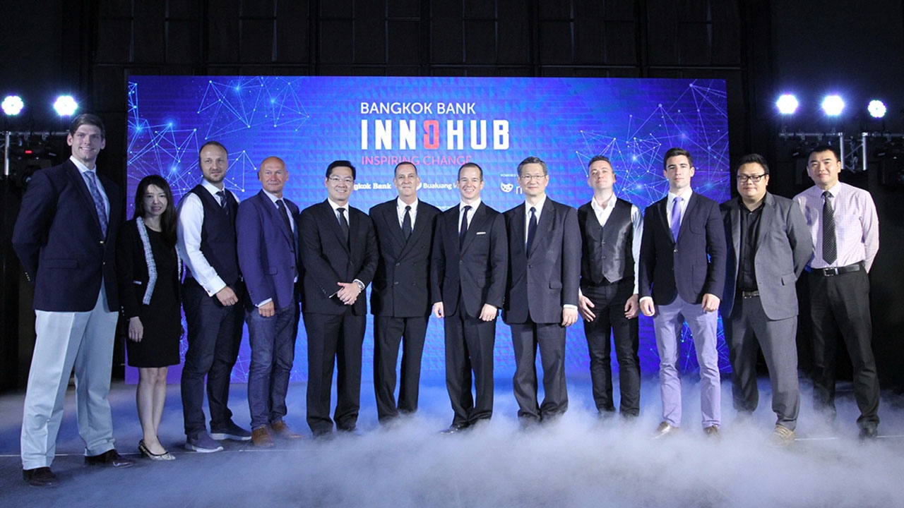 นายลอร์เรนซ์ มอร์แกน ประธานเจ้าหน้าที่บริหาร บริษัท เนสท์ (ที่ 6 จากขวา) พร้อมด้วย นายชาติศิริ โสภณพนิช กรรมการผู้จัดการใหญ่ (ที่ 5 จากขวา) และ ดร.พนุกร จันทรประภาพ เจ้าหน้าที่บริหารระดับ Vice President ฝ่ายการลงทุน ธนาคารกรุงเทพ จำกัด (มหาชน) (ที่ 5 จากซ้าย) ร่วมเปิดตัวโครงการบ่มเพาะสตาร์ทอัพ Bangkok Bank InnoHub อย่างเป็นทางการ หลังประสบความสำเร็จในการสรรหา 8 บริษัทสตาร์ทอัพกลุ่มฟินเทคระดับเวิลด์คลาส หรือบลูฟิน (Bluefin) จากจำนวนบริษัทที่ยื่นสมัครเข้าร่วมโครงการจำนวน 119 บริษัท จาก 32 ประเทศทั่วโลก ภายใต้แนวคิด Inspiring Change เพื่อเข้าอบรมหลักสูตรเข้มข้นที่ได้รับการออกแบบให้มีความโดดเด่นและมีเอกลักษณ์เฉพาะ โดยมีผู้บริหารจากธนาคารกรุงเทพ และผู้เชี่ยวชาญด้านนวัตกรรมการลงทุนชั้นนำระดับโลกจากเนสท์ร่วมเป็นที่ปรึกษา ดูแลและร่วมบ่มเพาะศักยภาพของสตาร์ทอัพบลูฟินทั้ง 8 ทีม รวม 12 สัปดาห์ ก่อนขึ้นเวทีนำเสนอแผนธุรกิจ (Demo day) ในเดือนกันยายน 2560 ซึ่งถือเป็นโอกาสสำคัญของบลูฟินทั้ง 8 ทีม ในการนำเสนอแผนธุรกิจต่อกลุ่มนักลงทุน ทั้งไทยและต่างประเทศ เพื่อก้าวไปสู่การระดมพันธมิตรทางธุรกิจระหว่างกันในอนาคต ส่งผลให้ธุรกิจสตาร์ทอัพสามารถเติบโตได้อย่างยั่งยืน